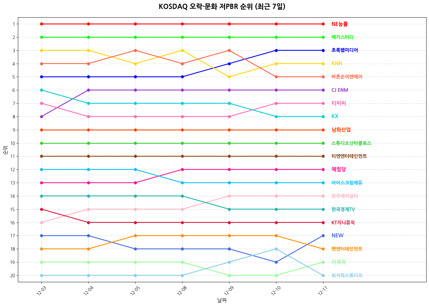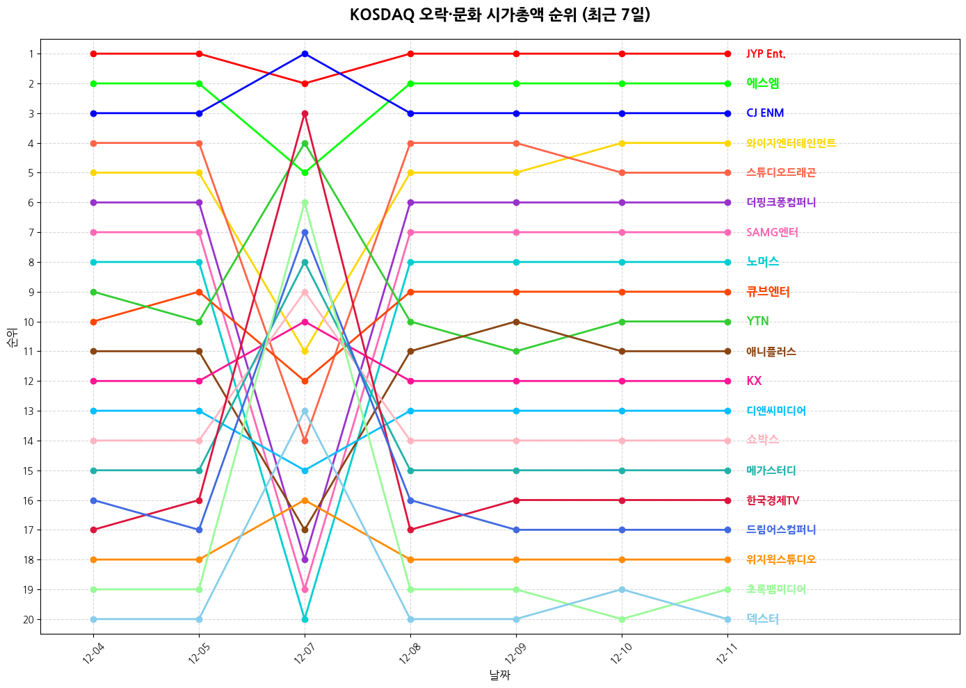 3️⃣ 코스닥 오락·문화 기업 순위 (성장주)