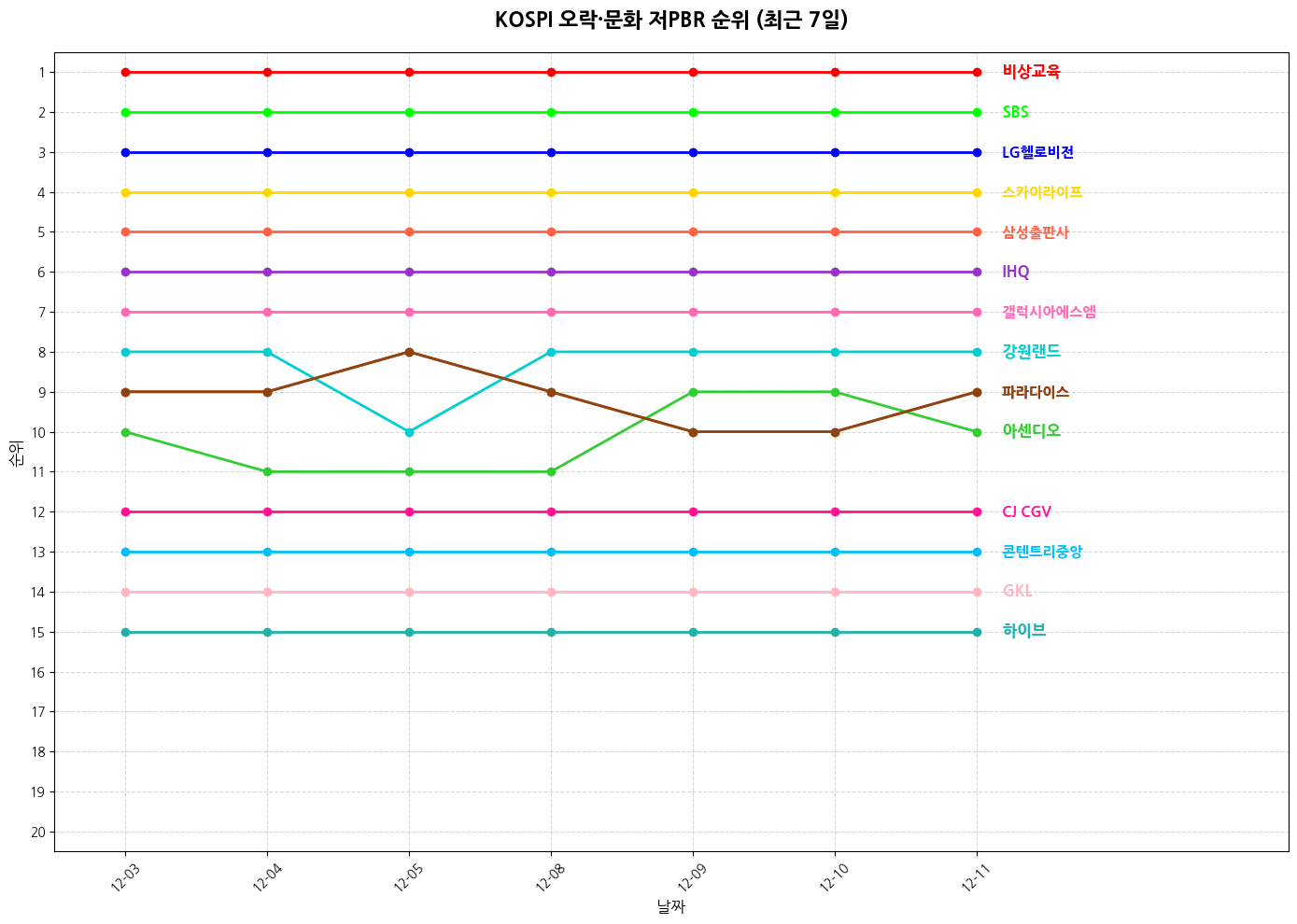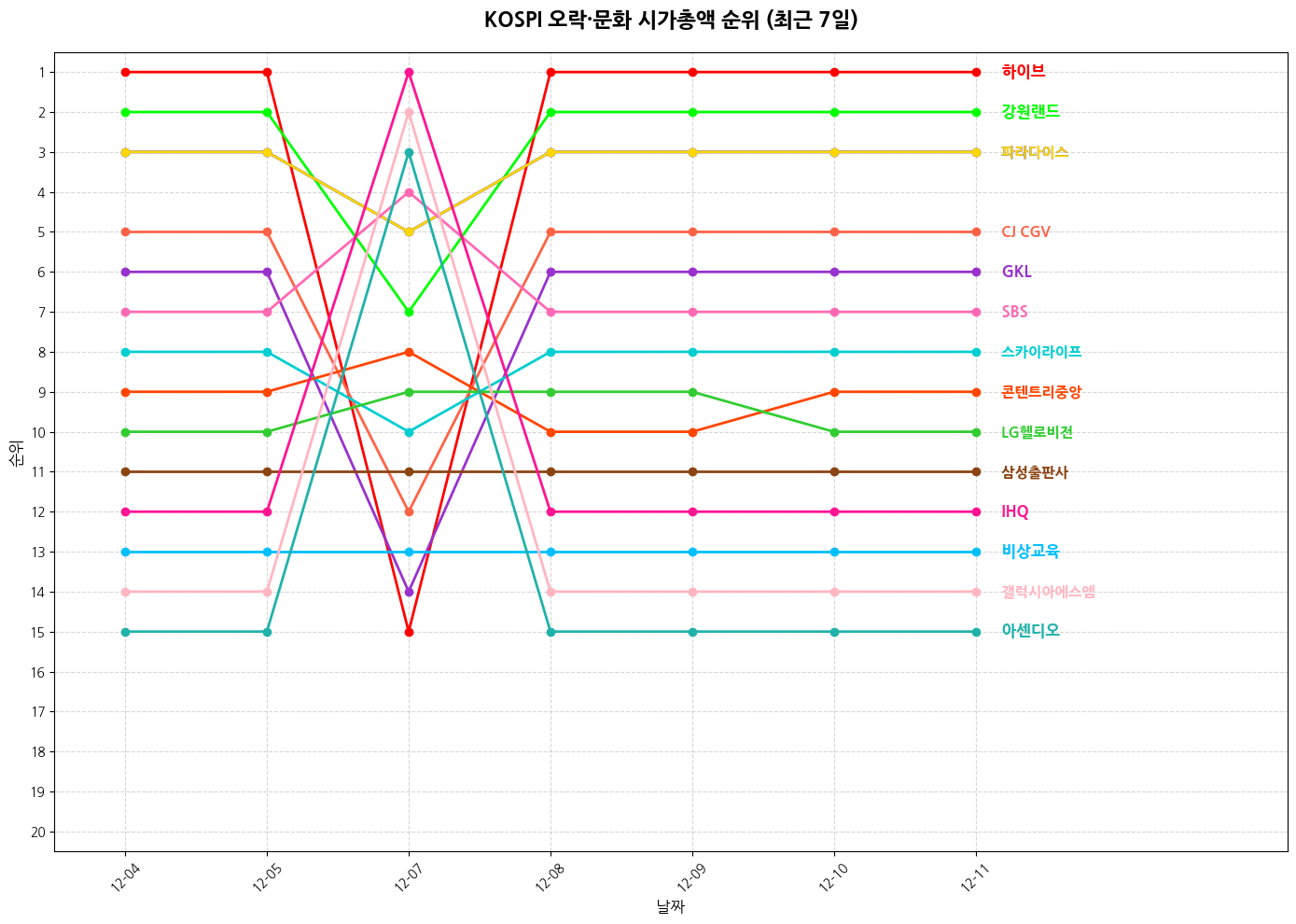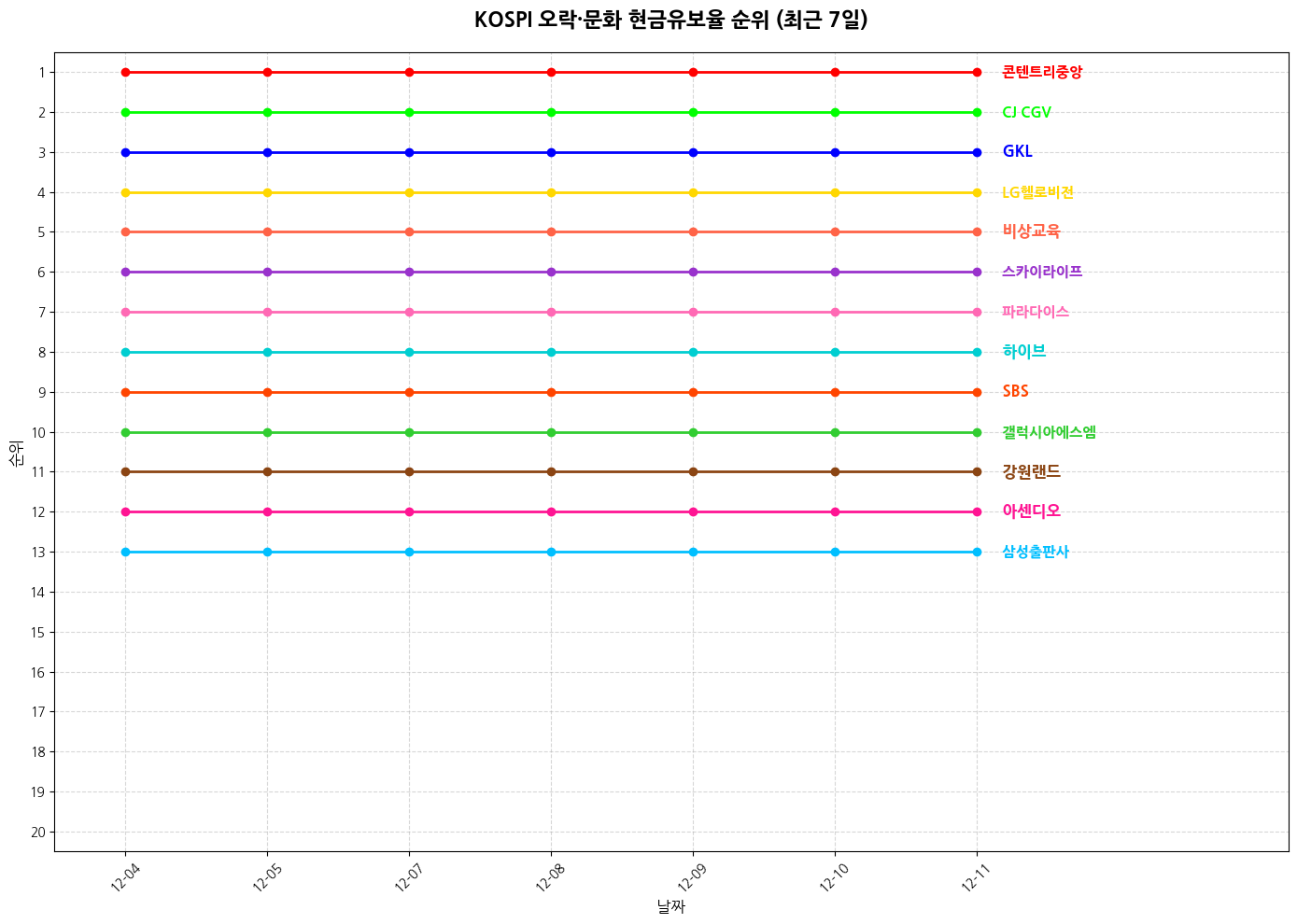 2️⃣ 코스피 오락·문화 기업 순위 (대형주)