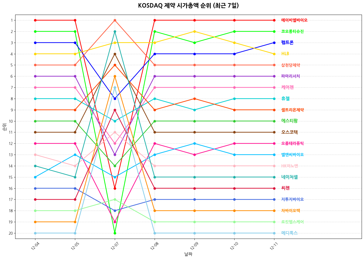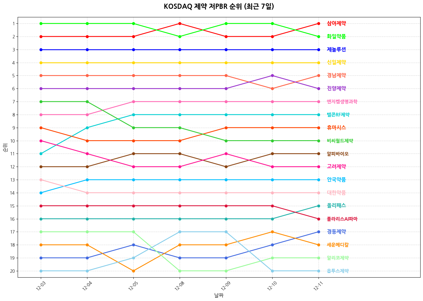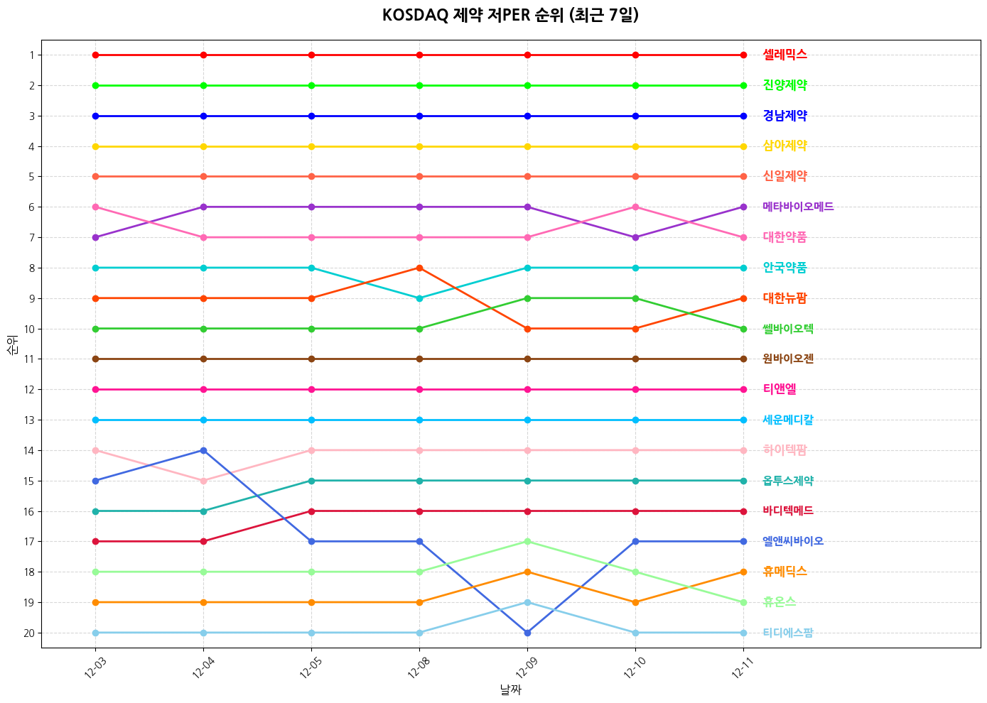 3️⃣ 코스닥 제약 기업 순위 (성장주)