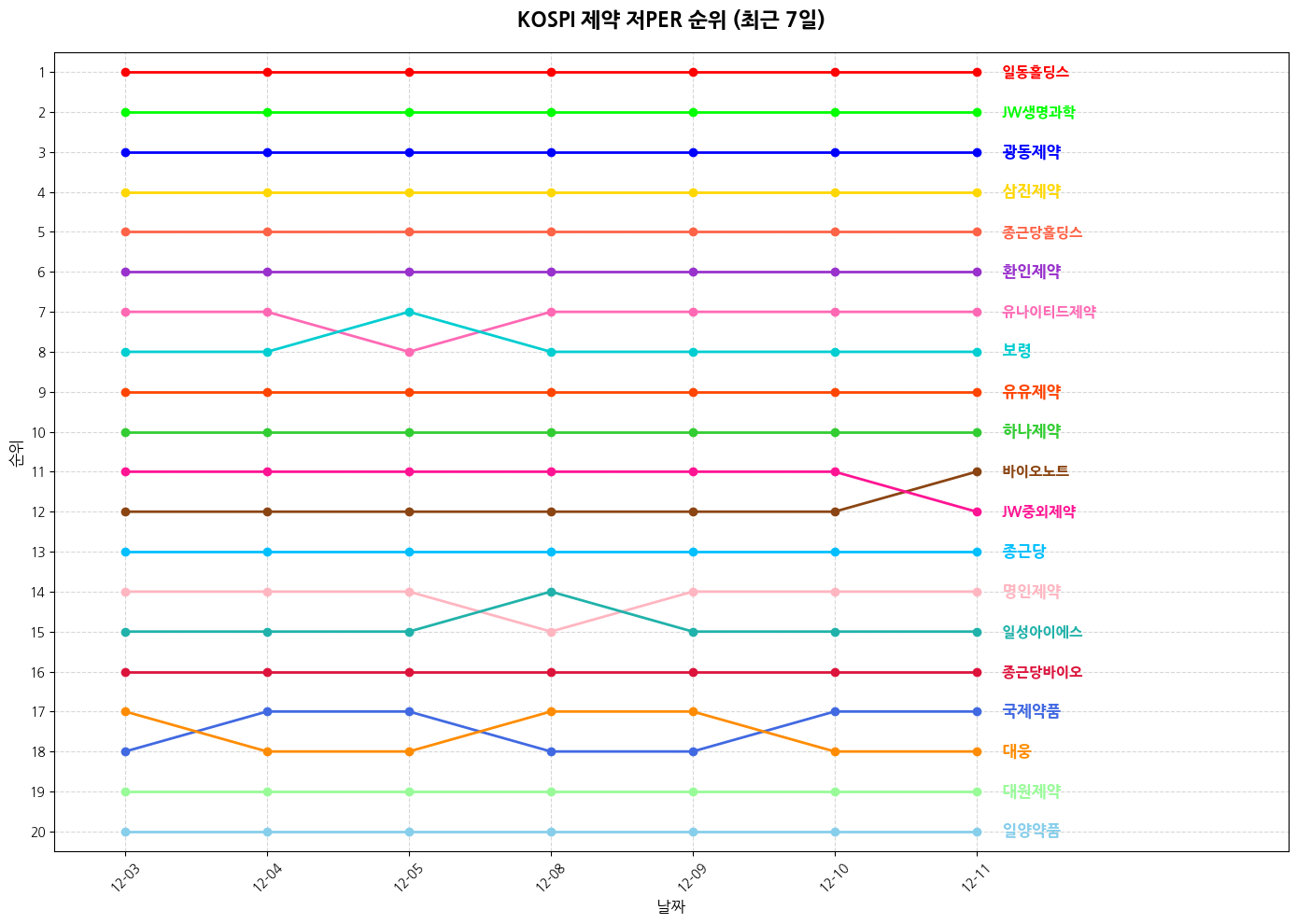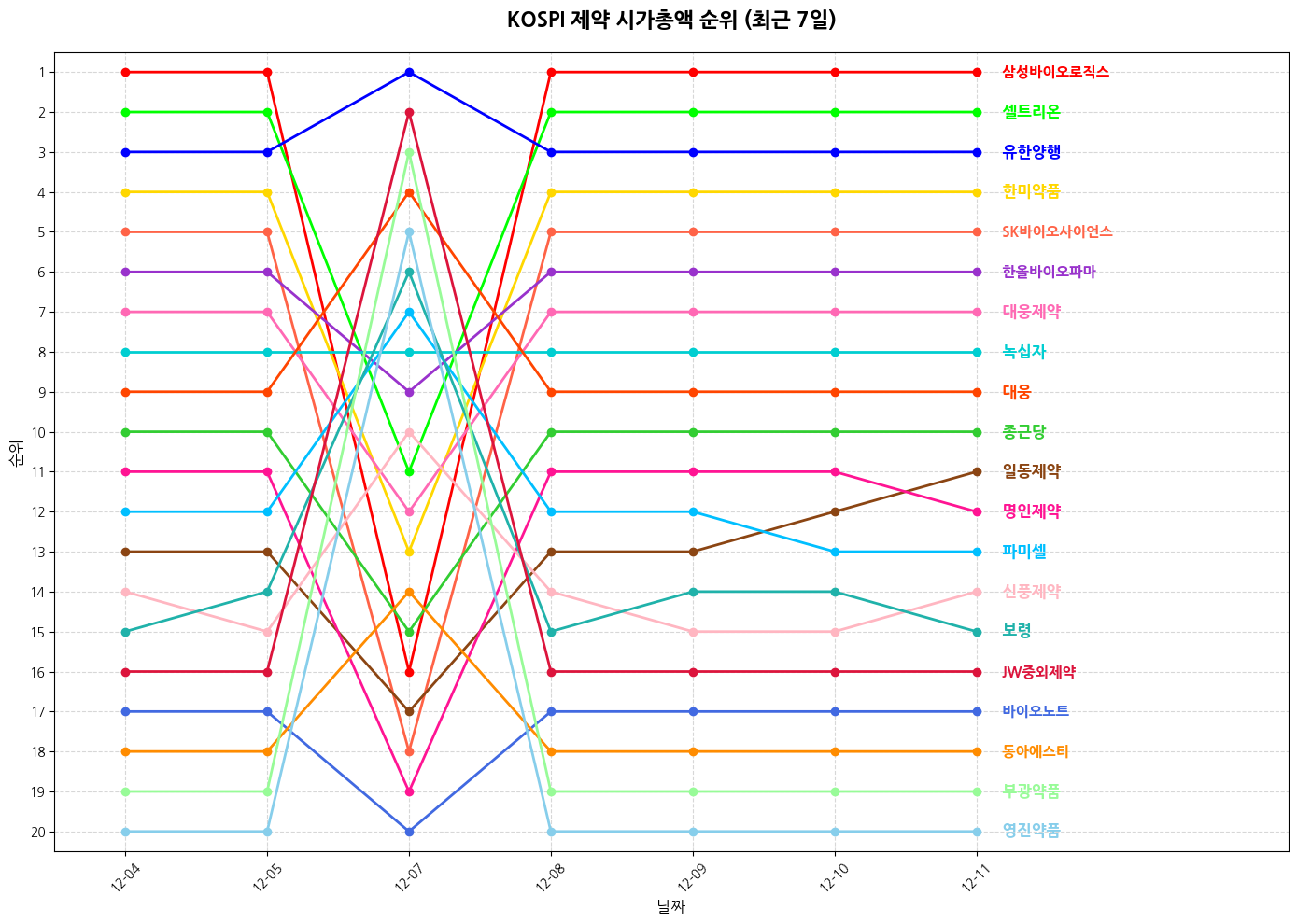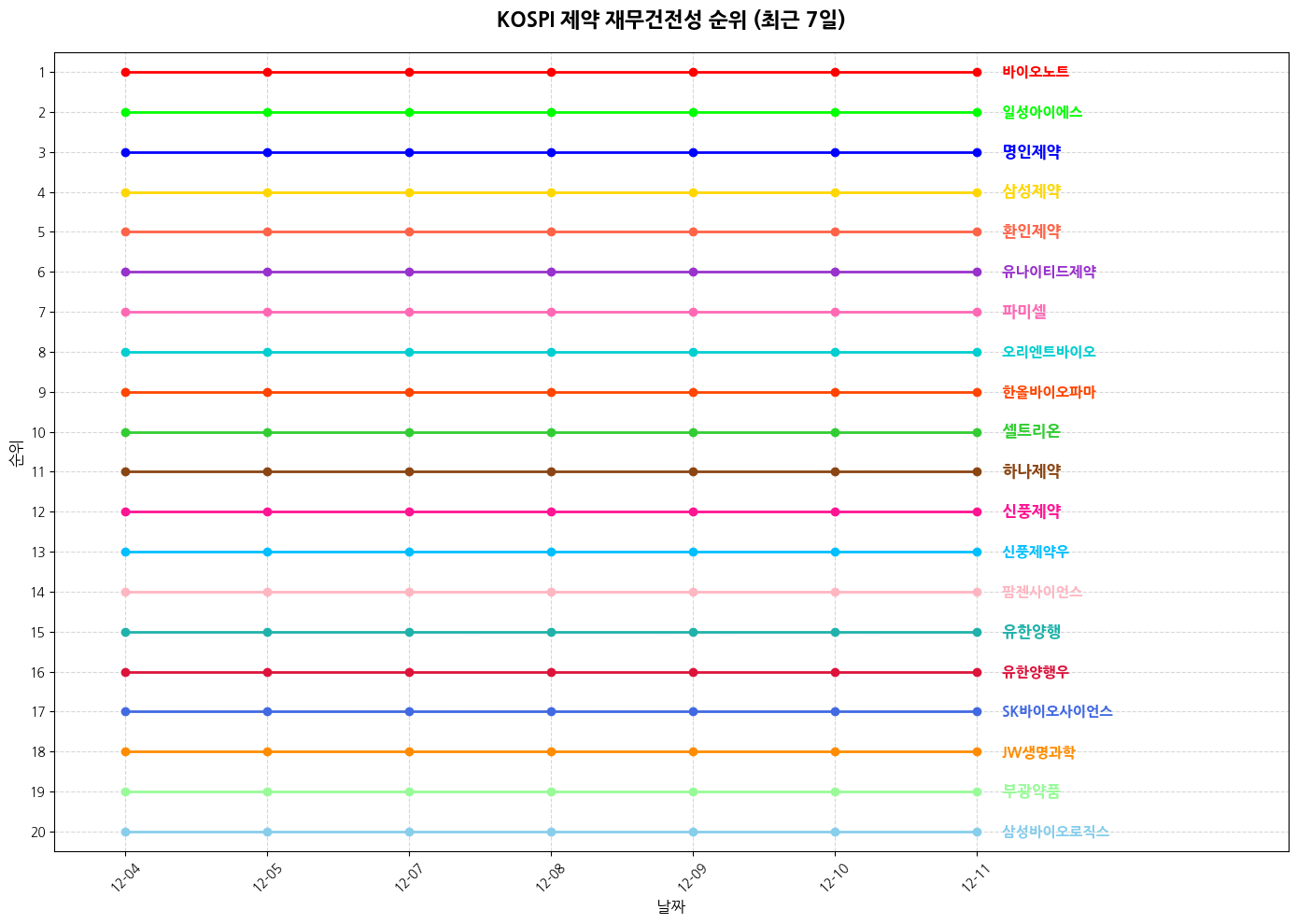 2️⃣ 코스피 제약 기업 순위 (대형주)