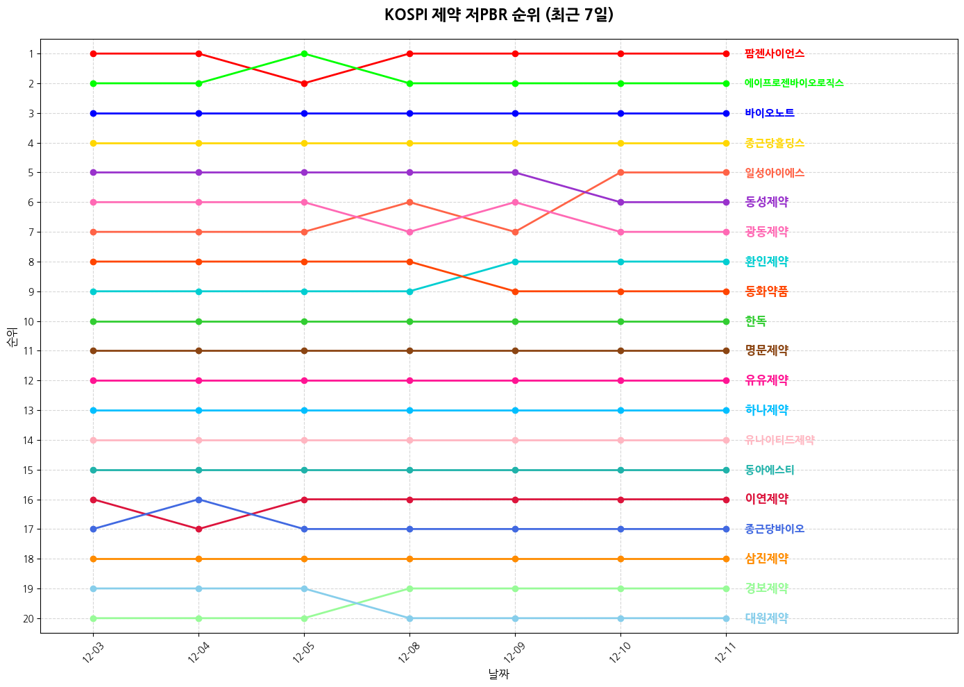 📊 제약 섹터 시가총액, 저PER, 저PBR, 현금유보율, 재무건전성 순위