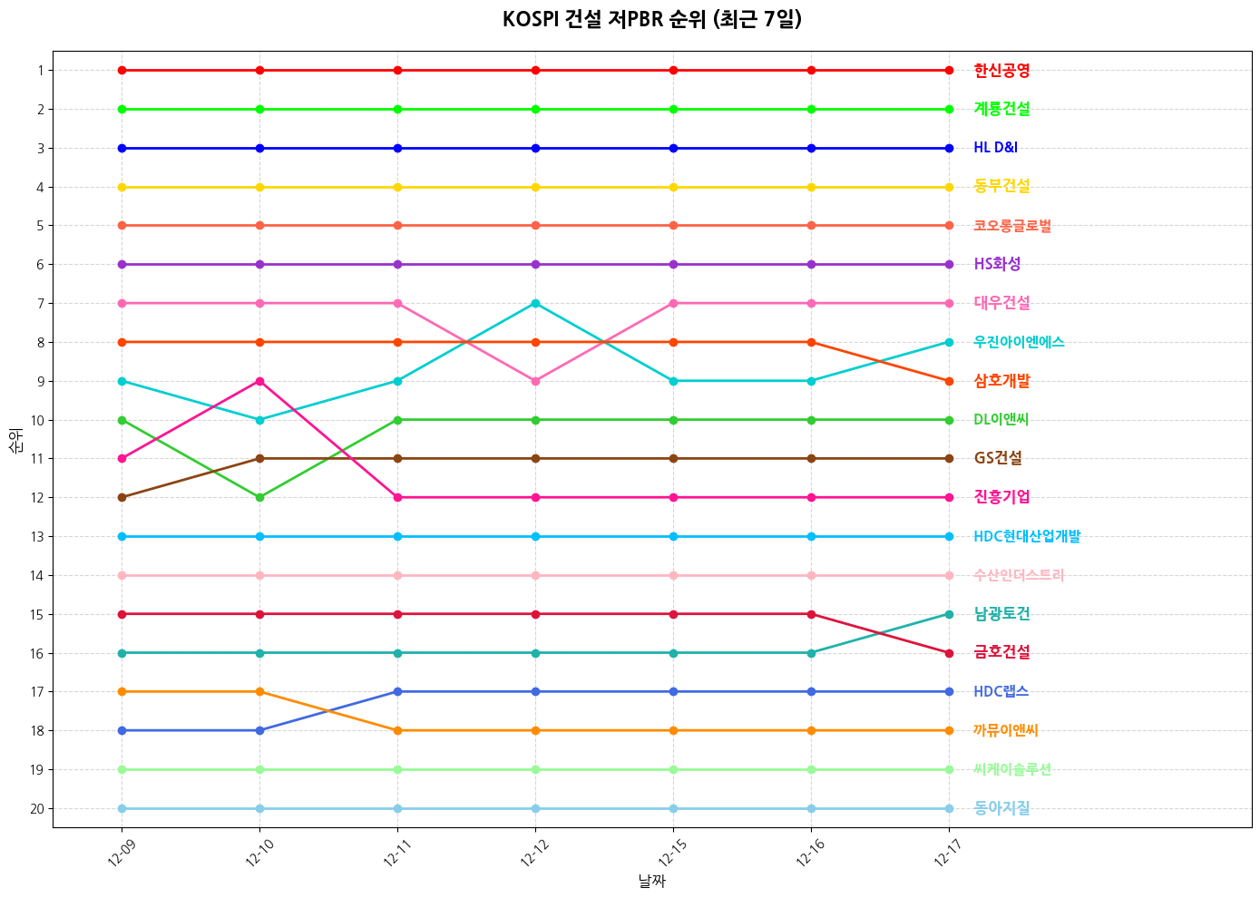 📊 건설 섹터 시가총액, 저PER, 저PBR, 현금유보율, 재무건전성 순위