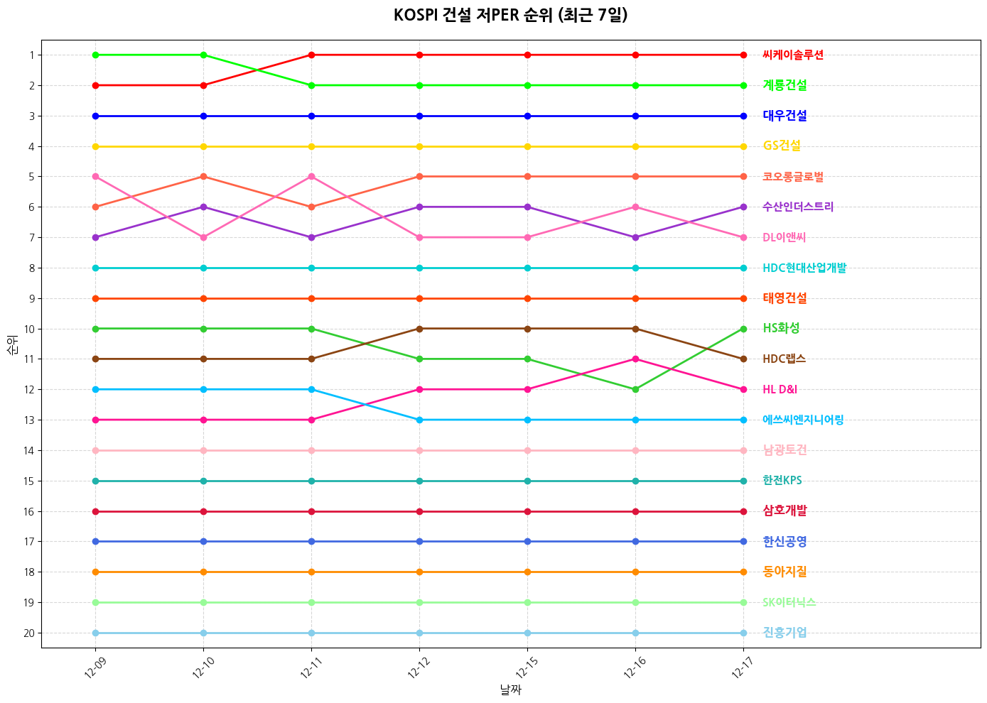 2️⃣ 코스피 건설 기업 순위 (대형주)