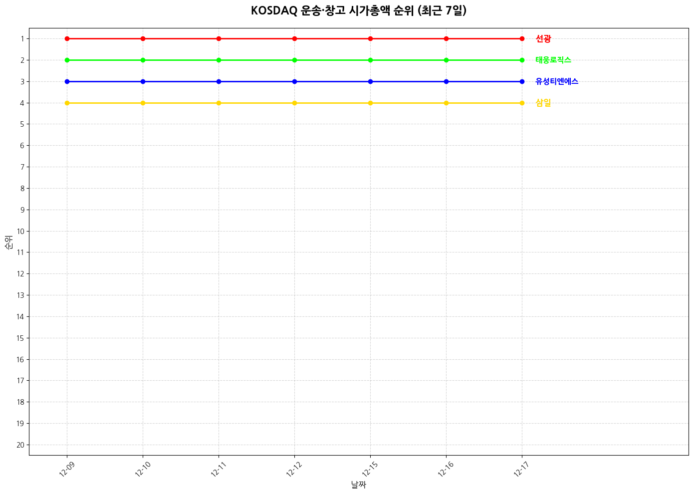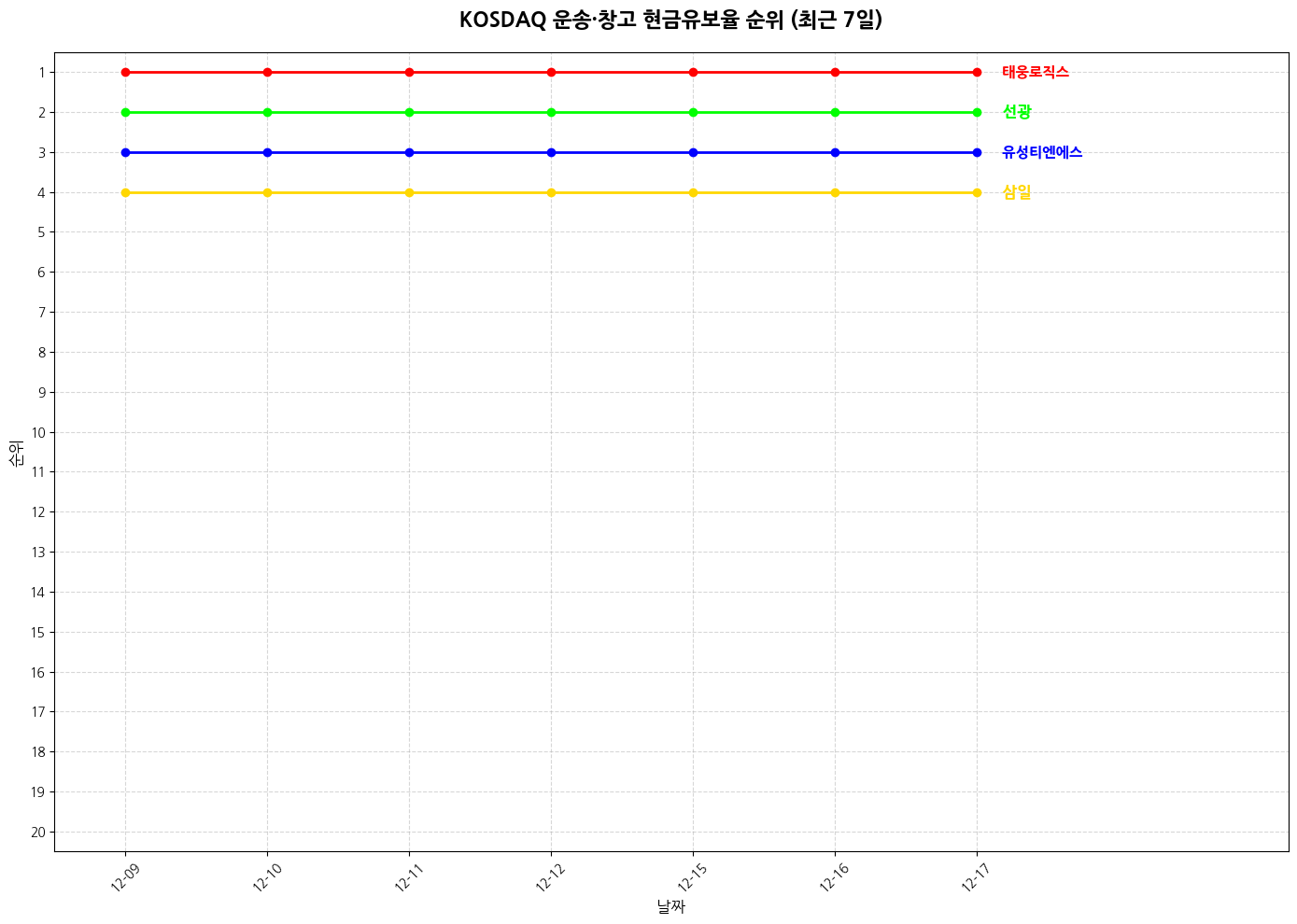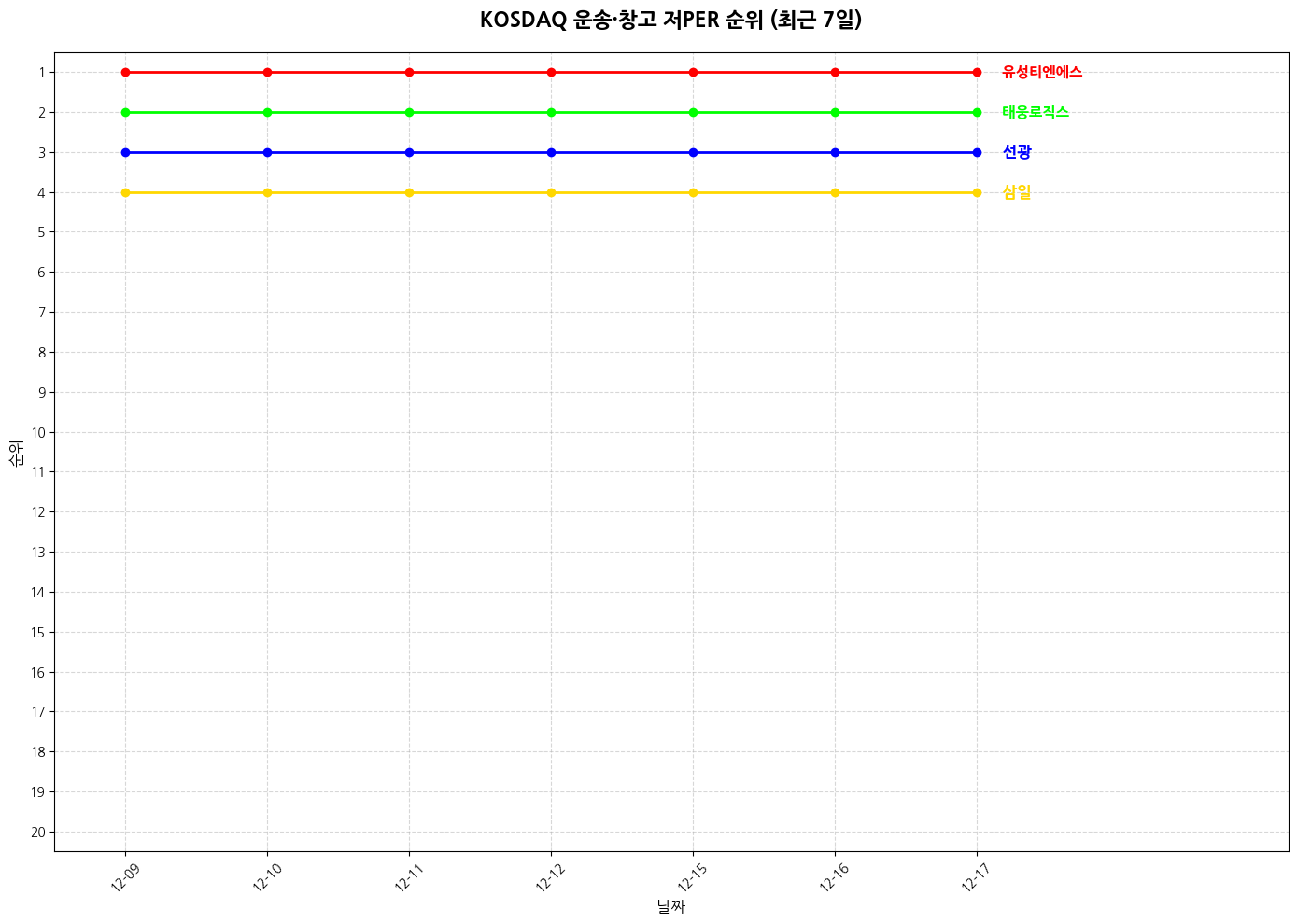 3️⃣ 코스닥 운송·창고 기업 순위 (성장주)