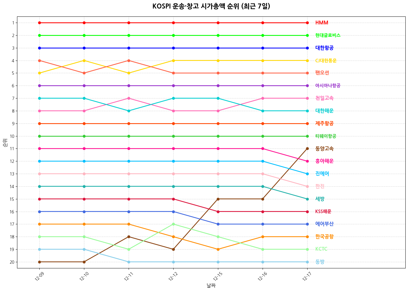 2️⃣ 코스피 운송·창고 기업 순위 (대형주)