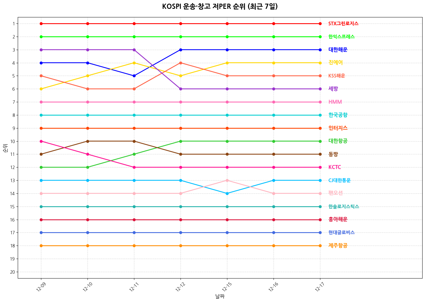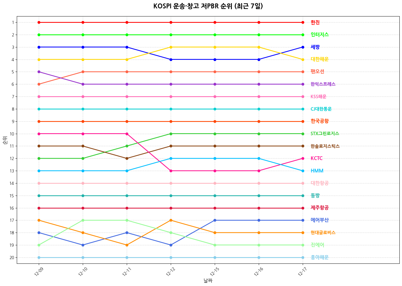 📊 운송·창고 섹터 시가총액, 저PER, 저PBR, 현금유보율, 재무건전성 순위