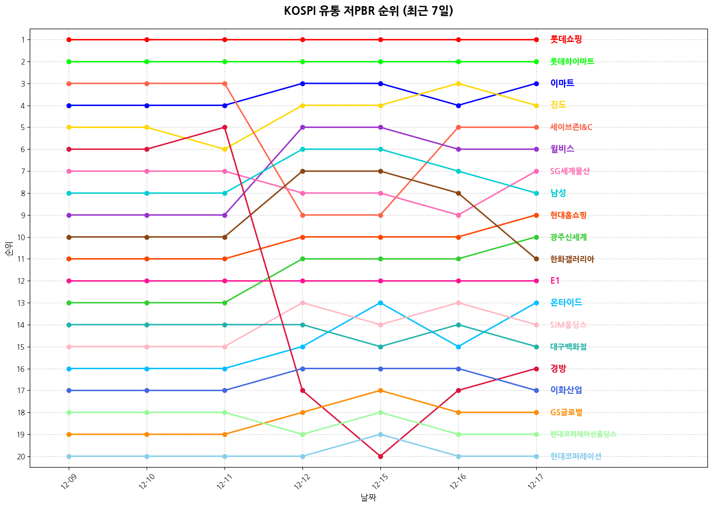 📊 유통 섹터 시가총액, 저PER, 저PBR, 현금유보율, 재무건전성 순위