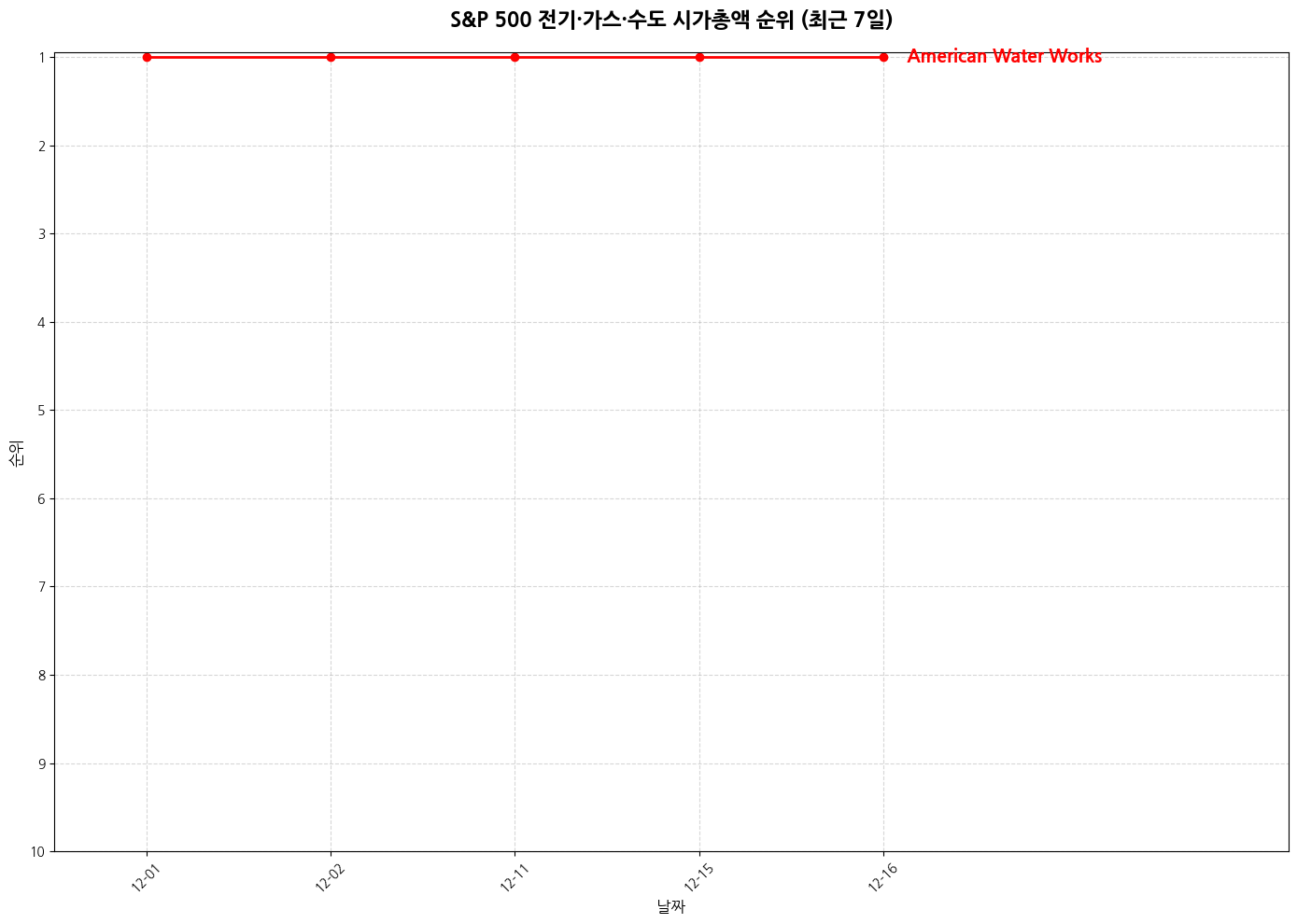 📊 S&P 500 전기·가스·수도 시가총액 TOP 10 순위 변화