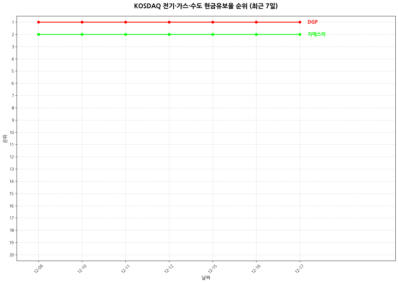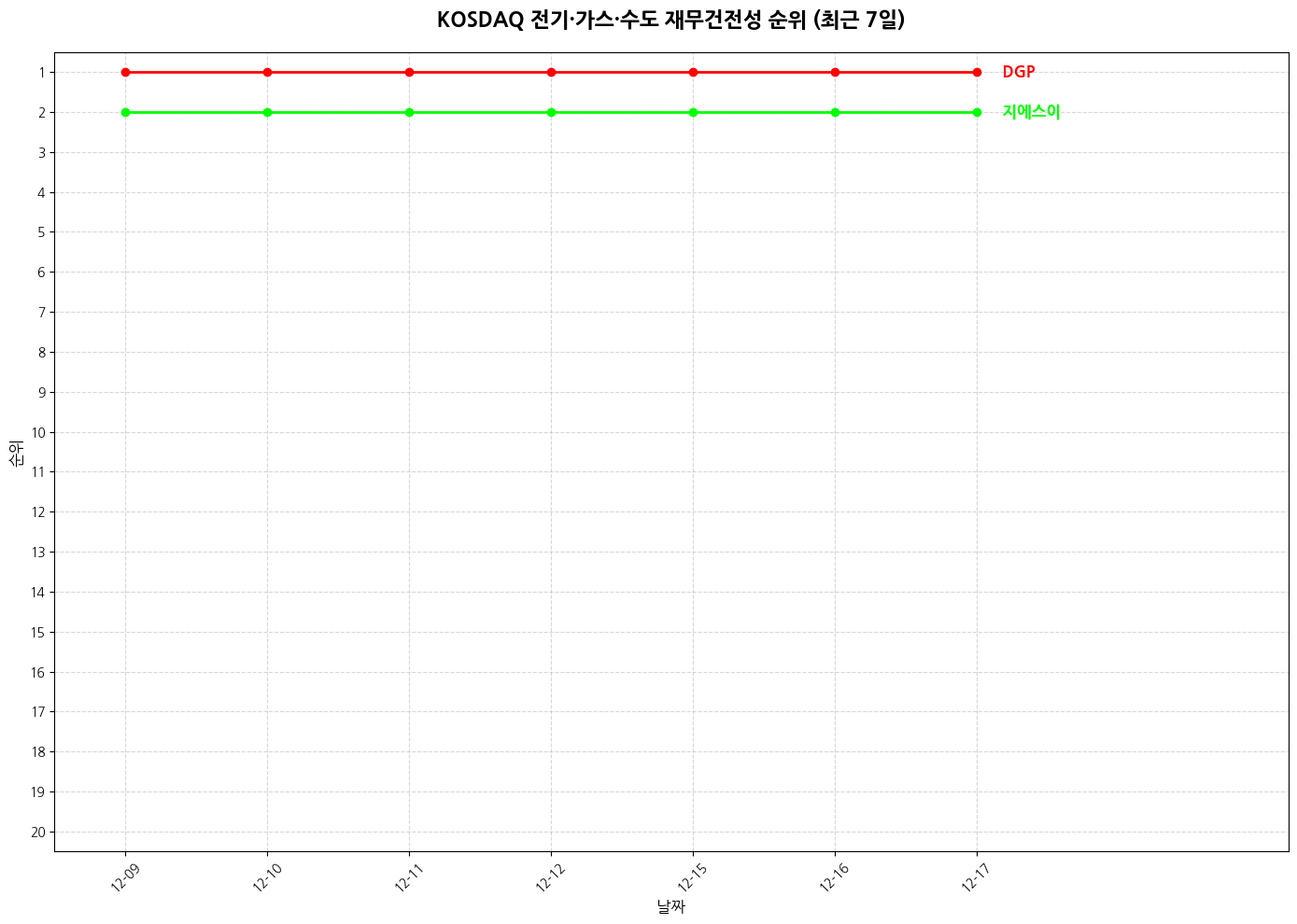3️⃣ 코스닥 전기·가스·수도 기업 순위 (성장주)