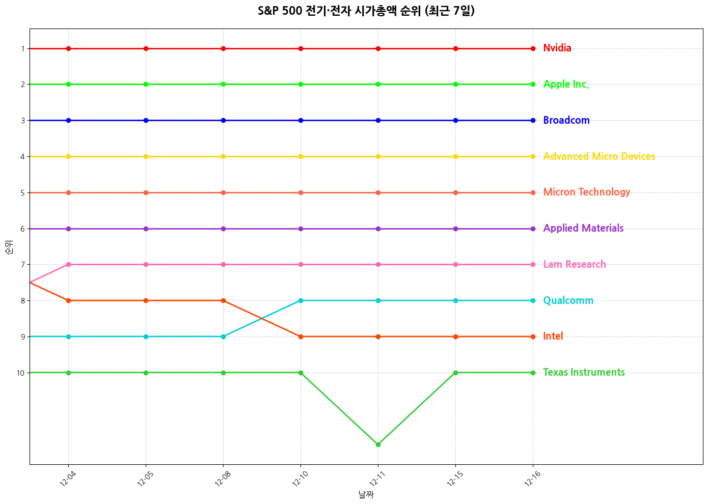 📊 S&P 500 전기·전자 시가총액 TOP 10 순위 변화