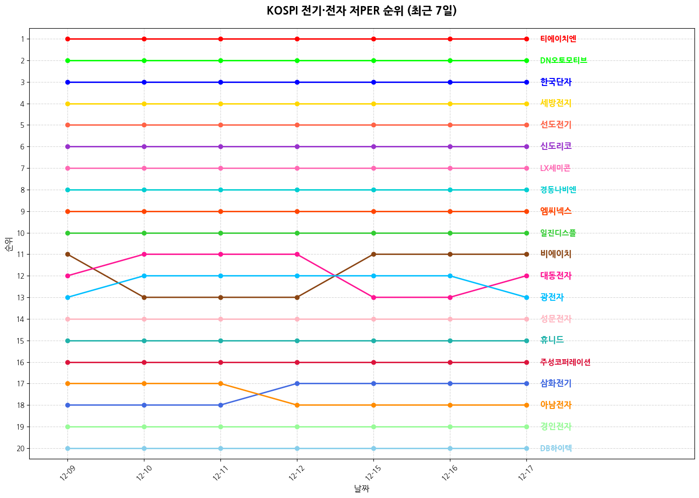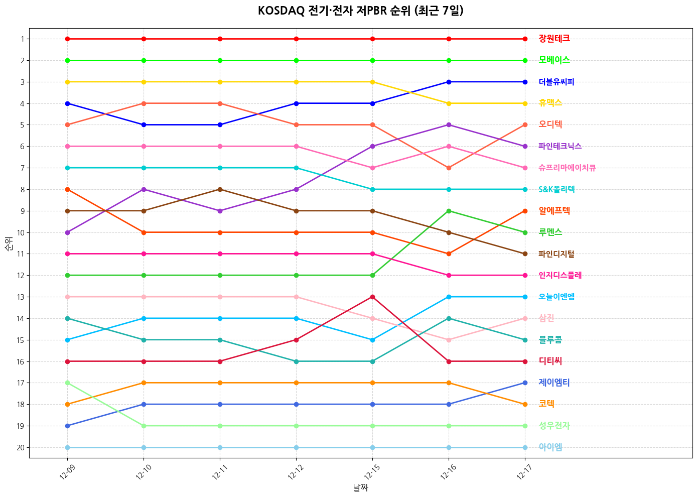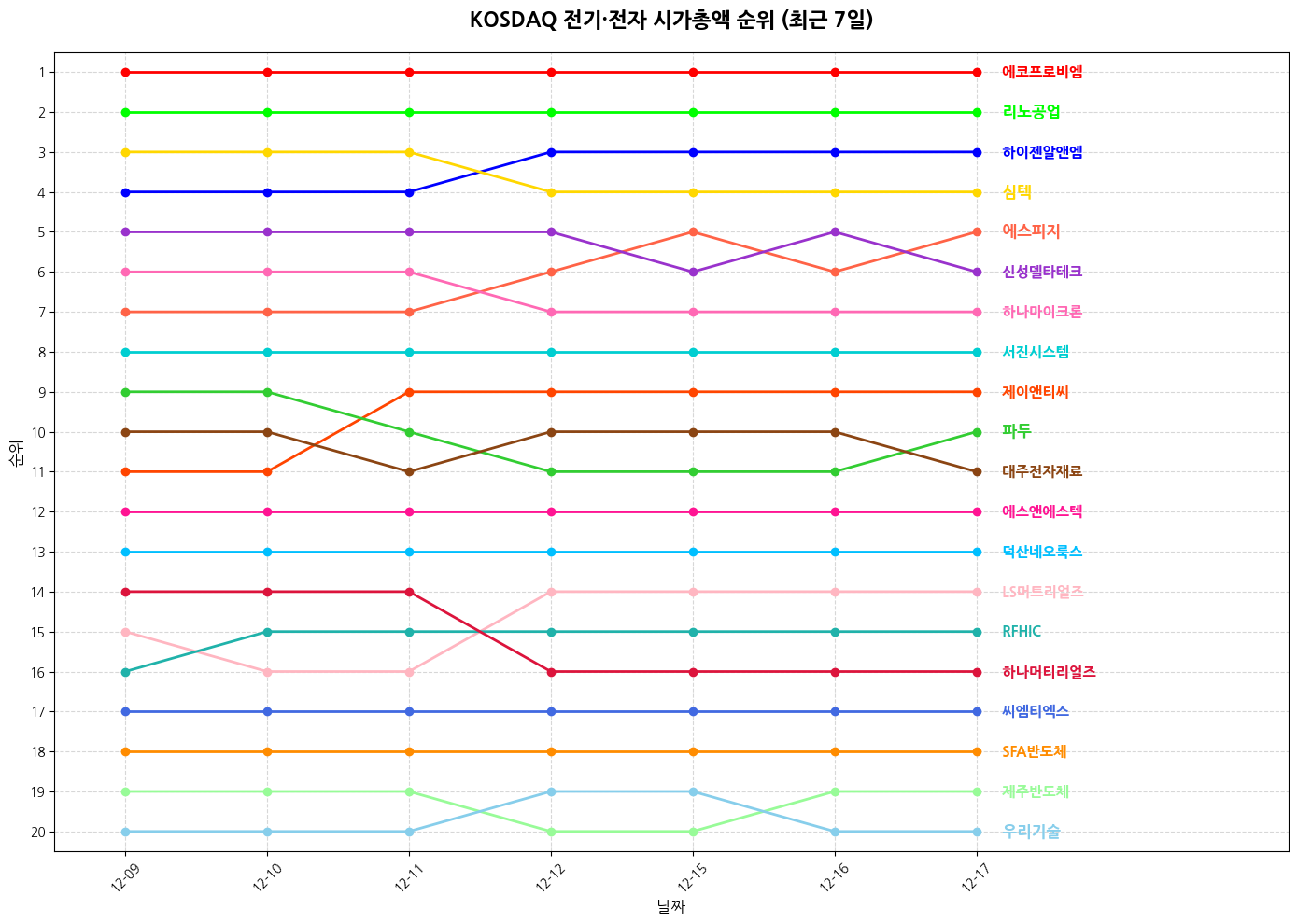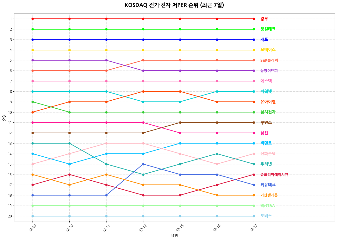 3️⃣ 코스닥 전기·전자 기업 순위 (성장주)