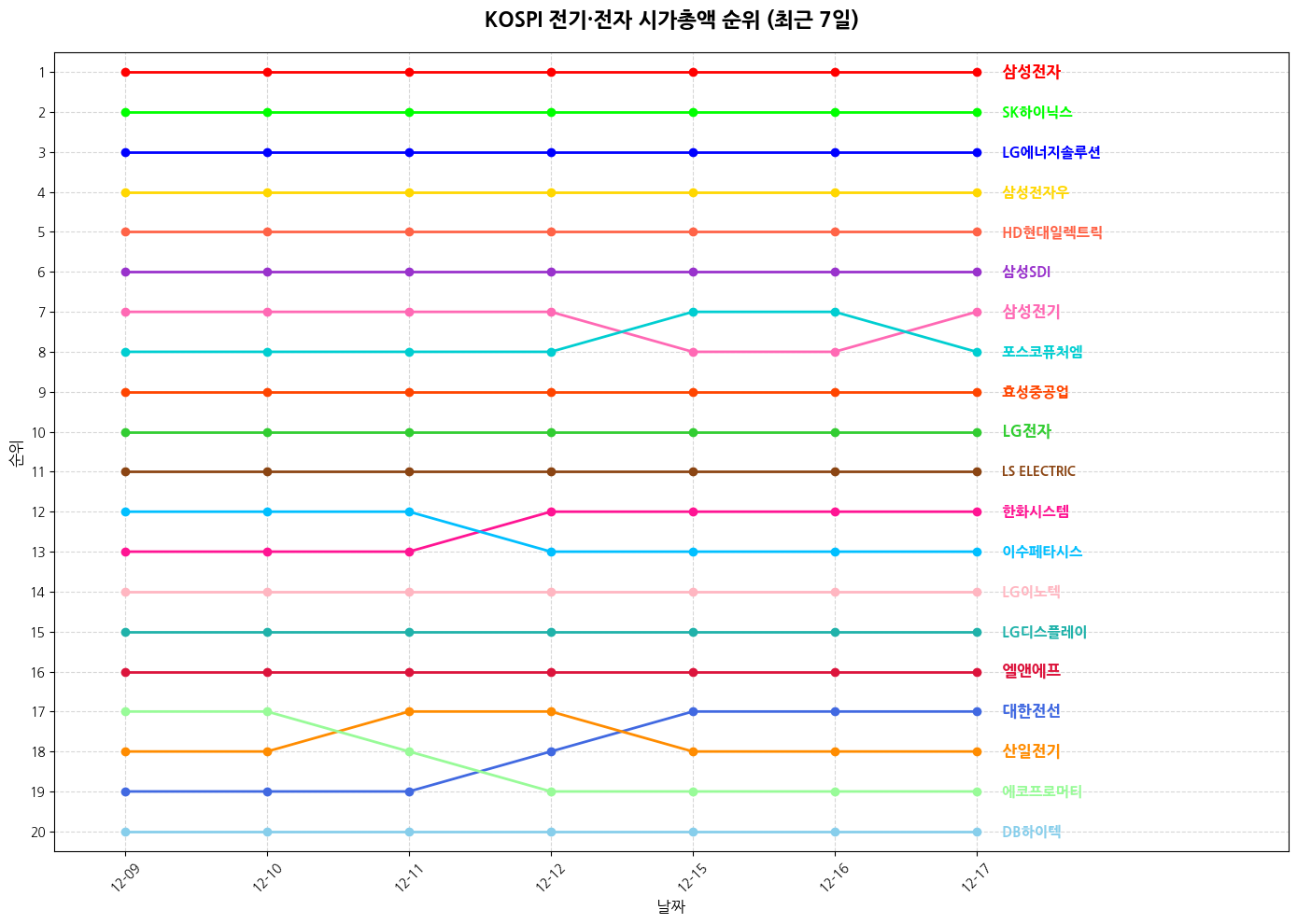 2️⃣ 코스피 전기·전자 기업 순위 (대형주)
