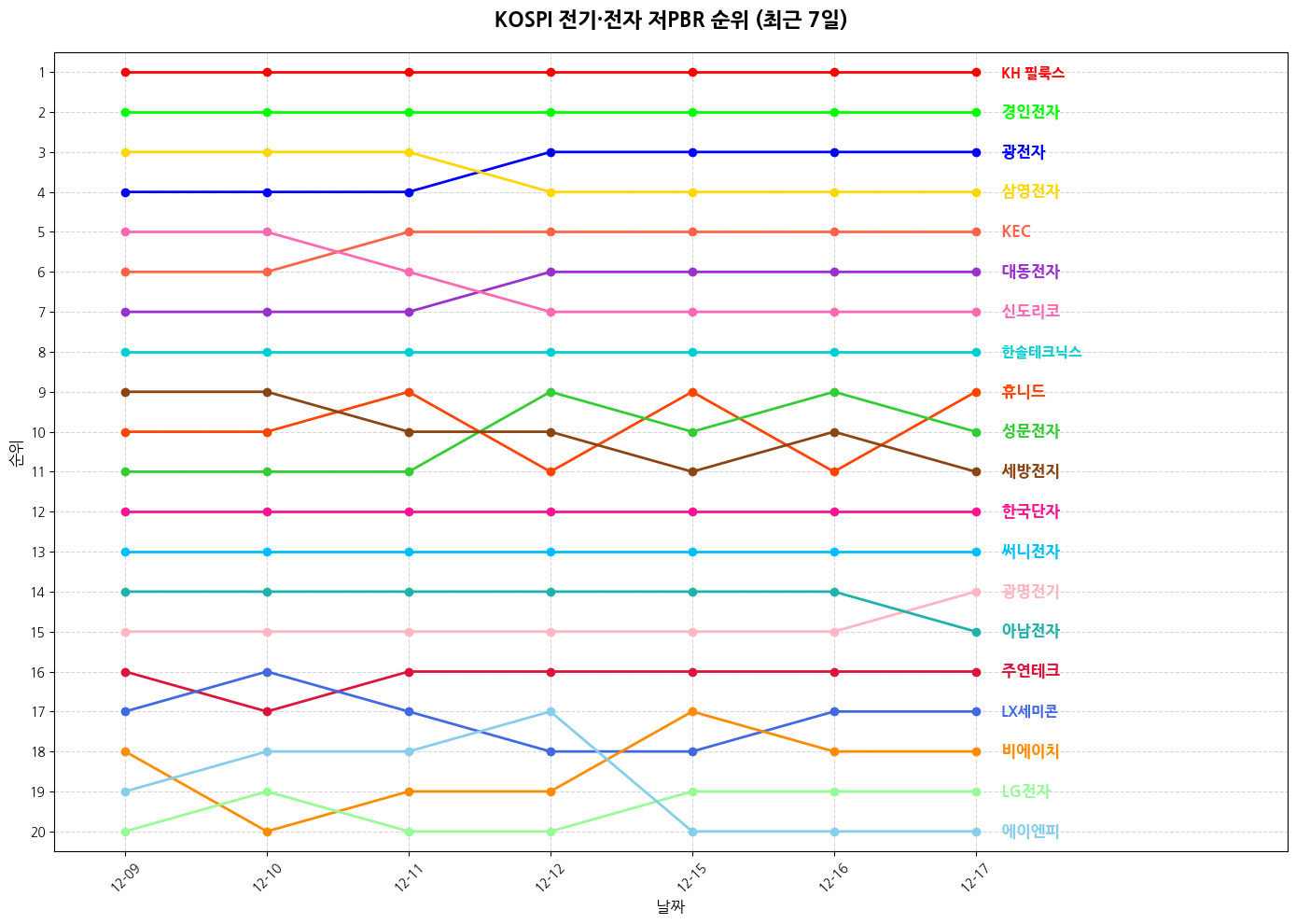 📊 전기·전자 섹터 시가총액, 저PER, 저PBR, 현금유보율, 재무건전성 순위