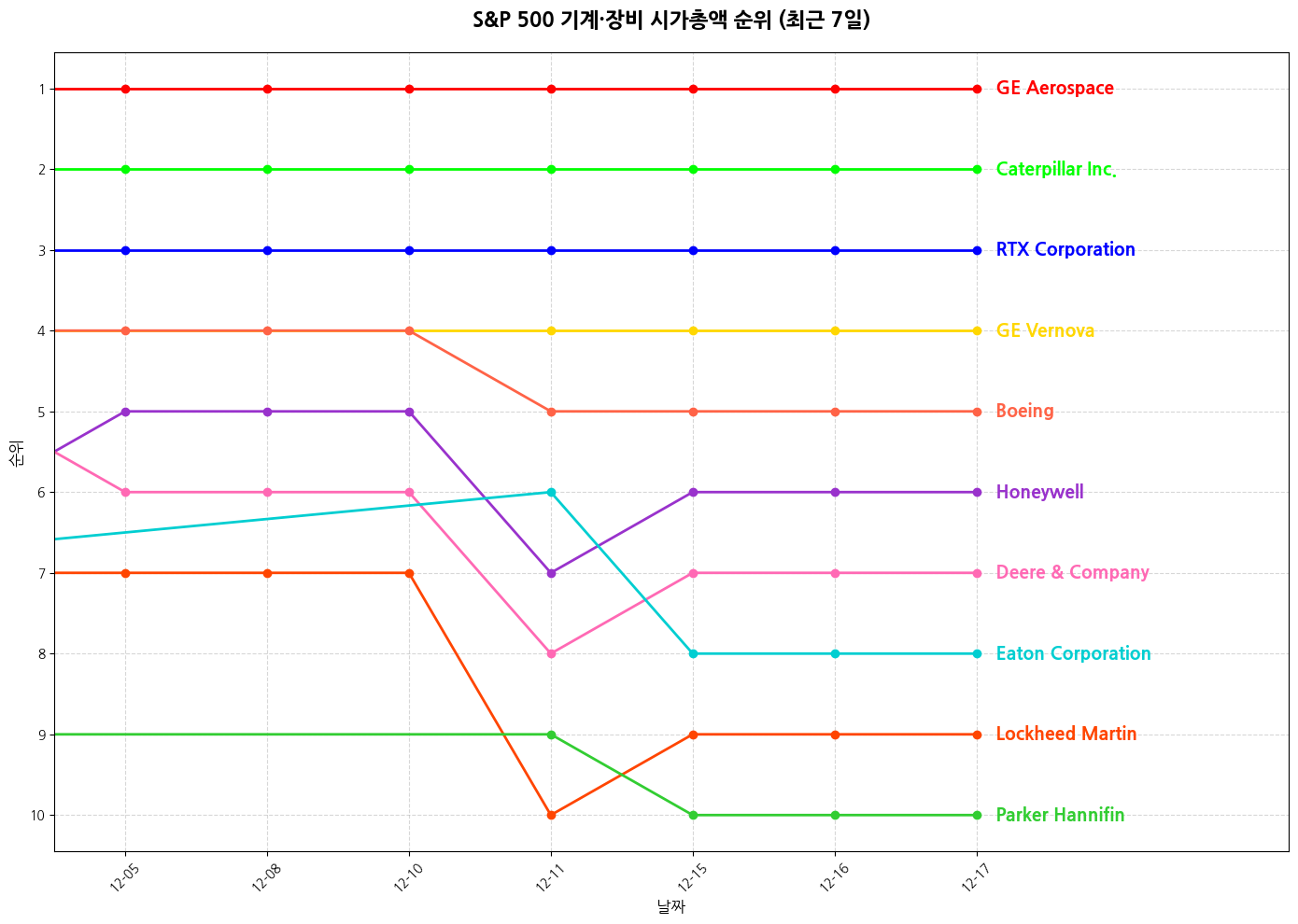 📊 S&P 500 기계·장비 시가총액 TOP 10 순위 변화