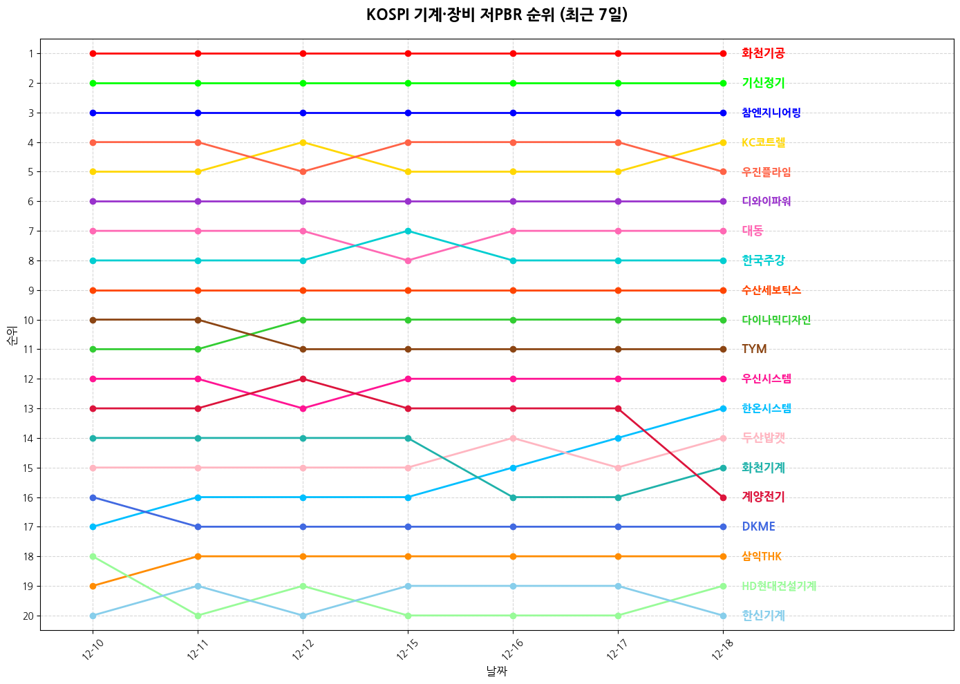 📊 기계·장비 섹터 시가총액, 저PER, 저PBR, 현금유보율, 재무건전성 순위