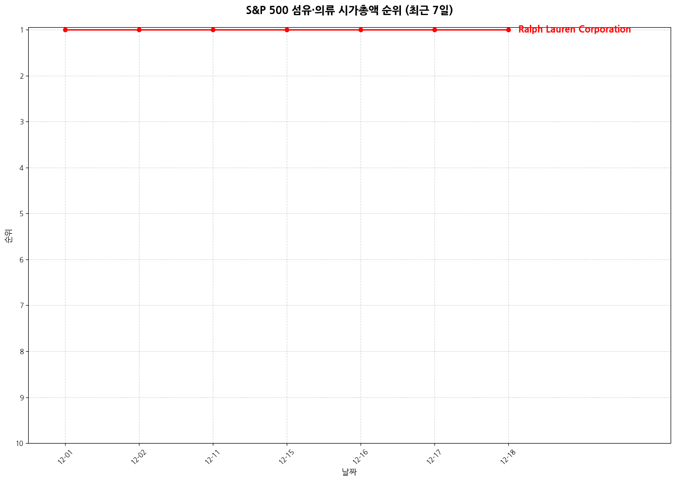 📊 S&P 500 섬유·의류 시가총액 TOP 10 순위 변화