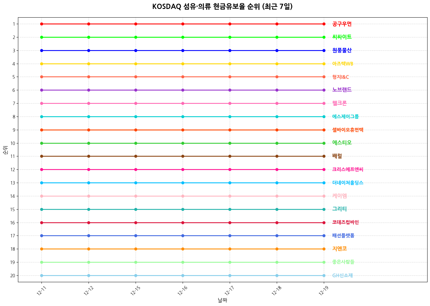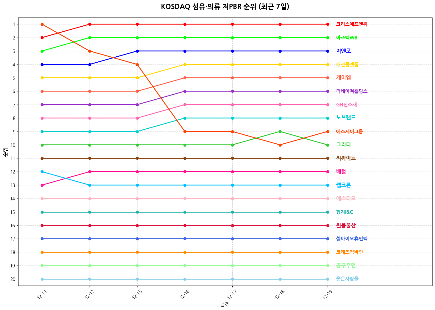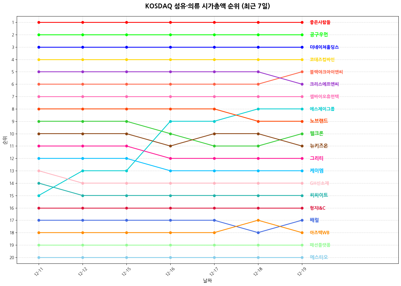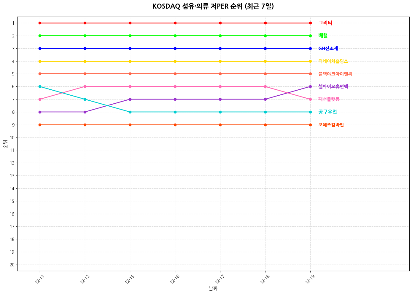 3️⃣ 코스닥 섬유·의류 기업 순위 (성장주)