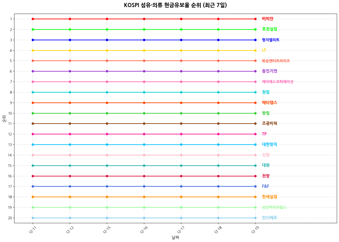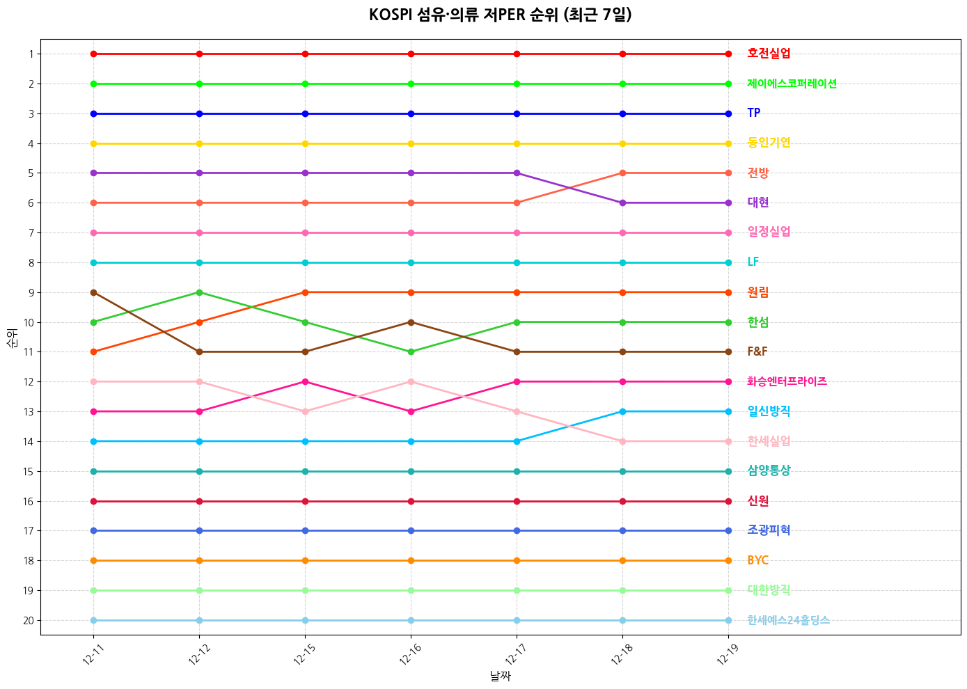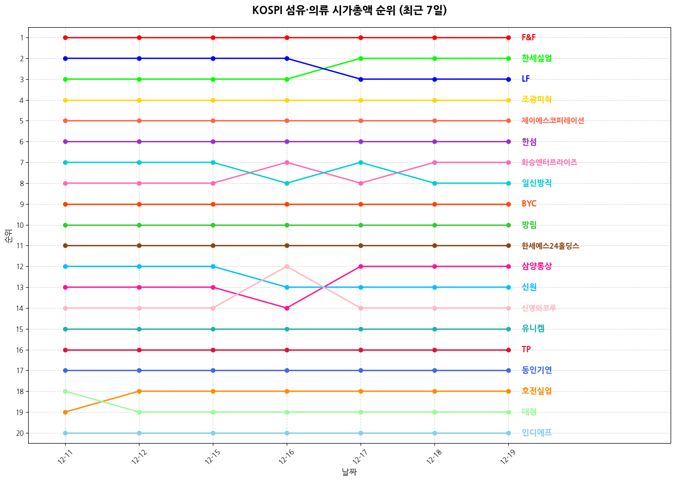 2️⃣ 코스피 섬유·의류 기업 순위 (대형주)