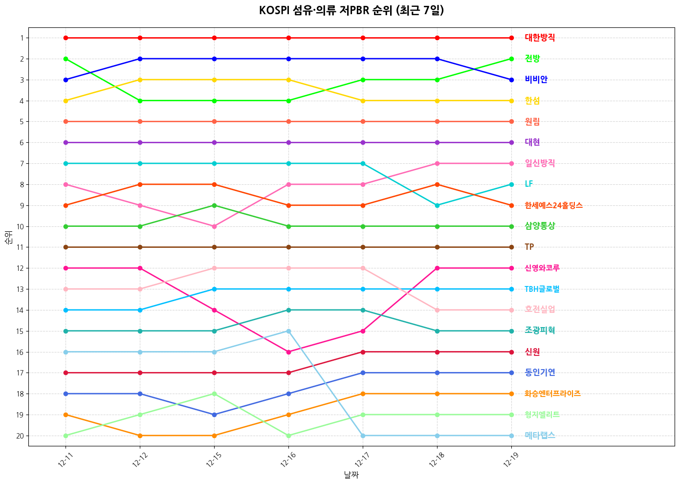 📊 섬유·의류 섹터 시가총액, 저PER, 저PBR, 현금유보율, 재무건전성 순위