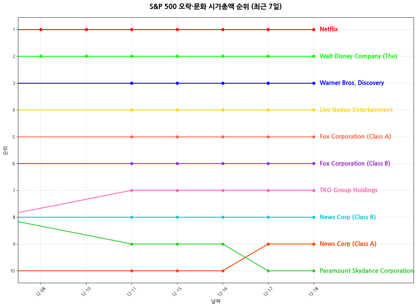 📊 S&P 500 오락·문화 시가총액 TOP 10 순위 변화