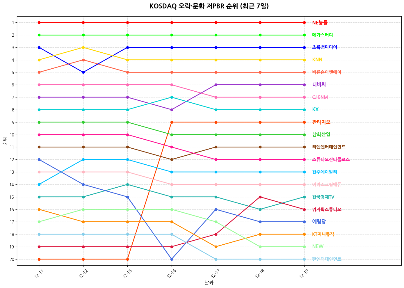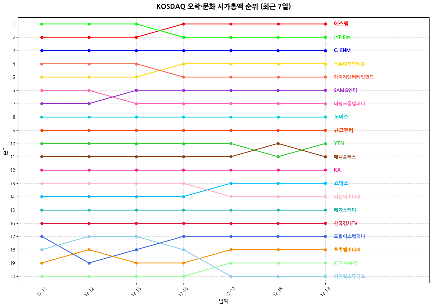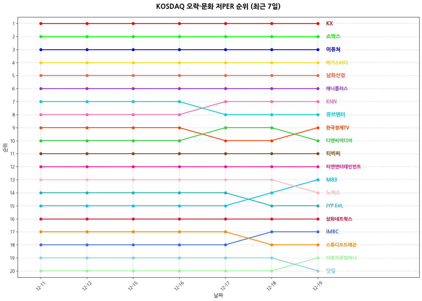 3️⃣ 코스닥 오락·문화 기업 순위 (성장주)