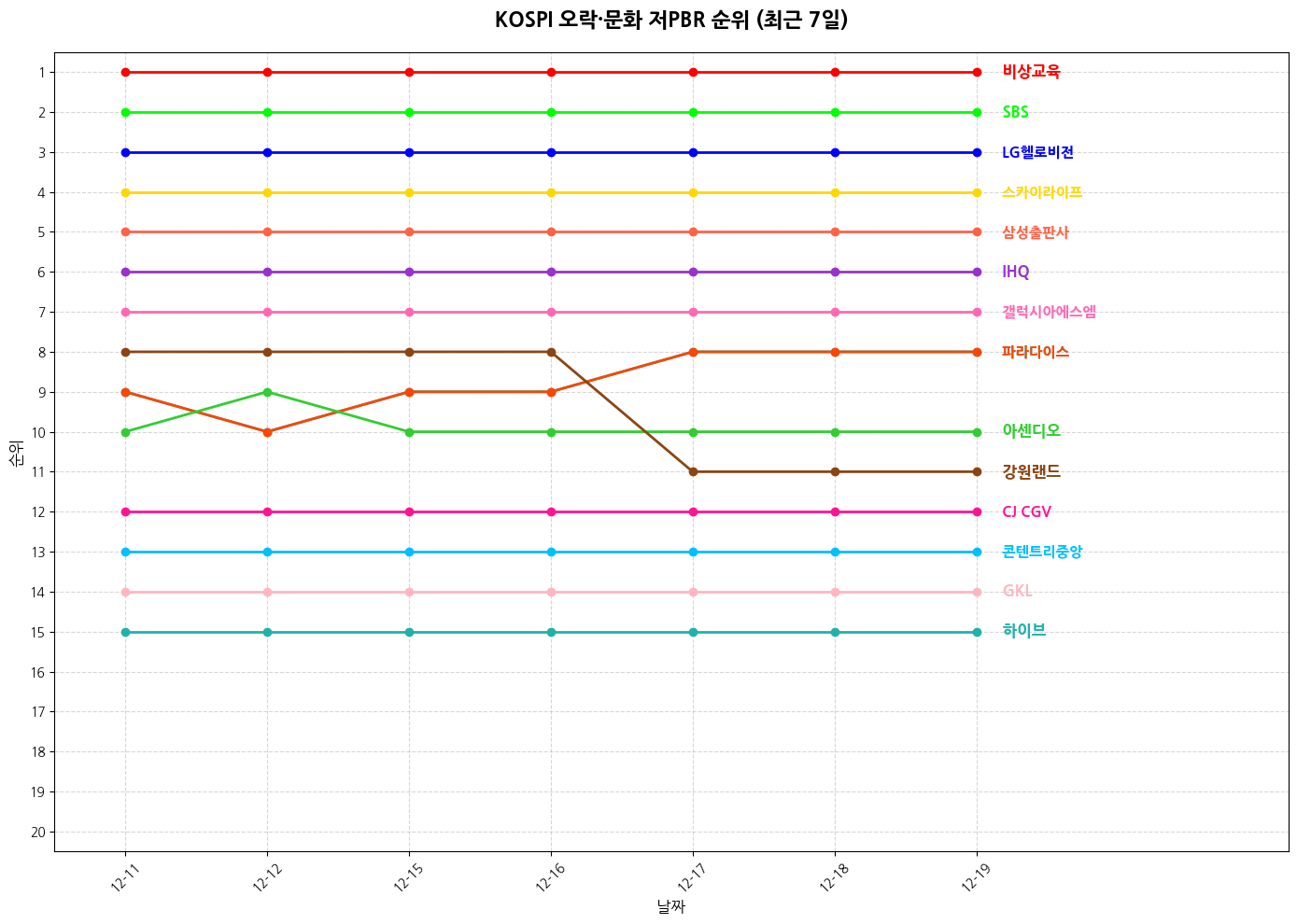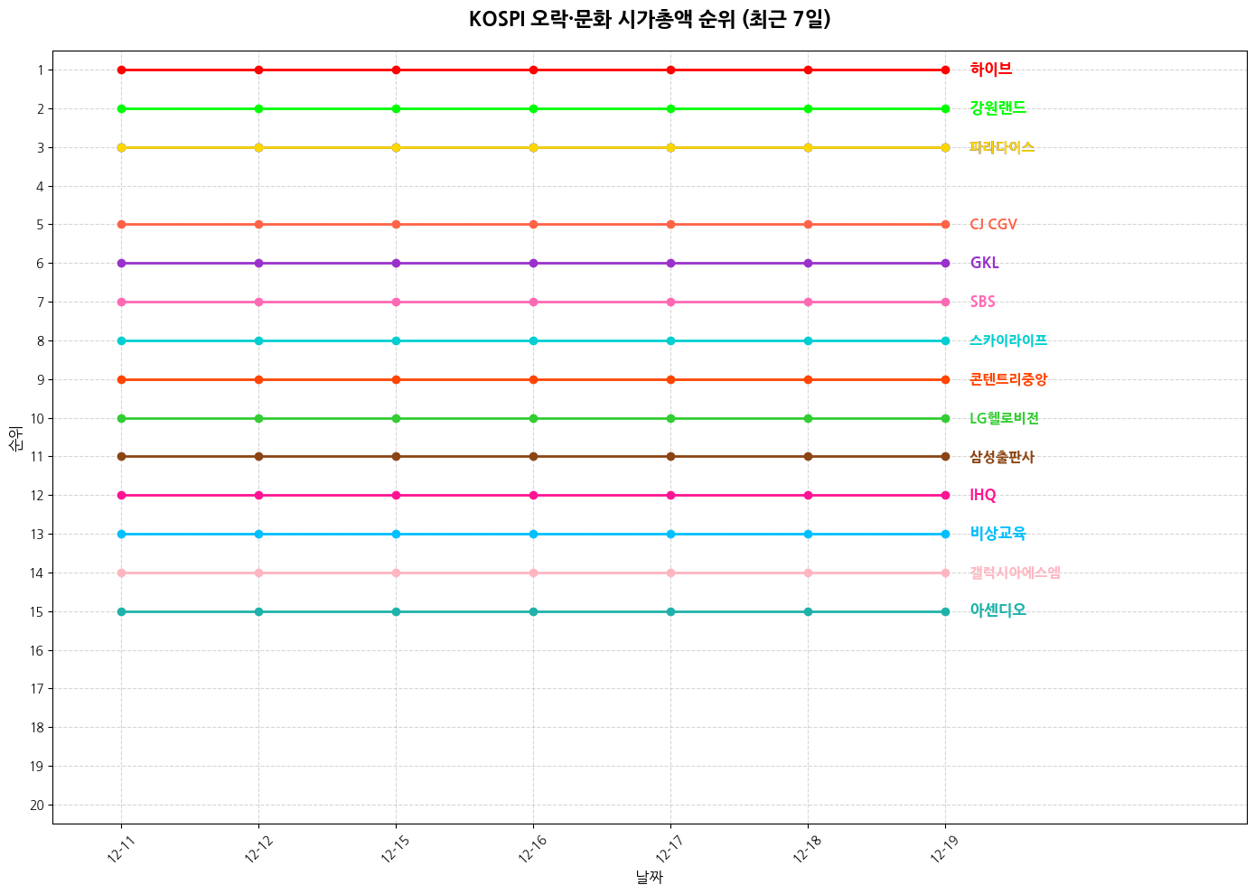 2️⃣ 코스피 오락·문화 기업 순위 (대형주)