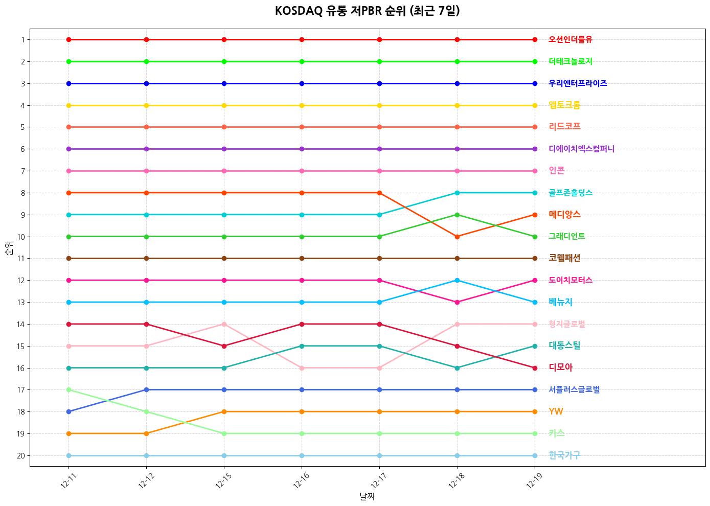 - 🏦 저PBR TOP 20 – 자산 대비 주가가 낮은 종목들입니다. “헐값”에 우량 자산을 살 기회일 수 있어요