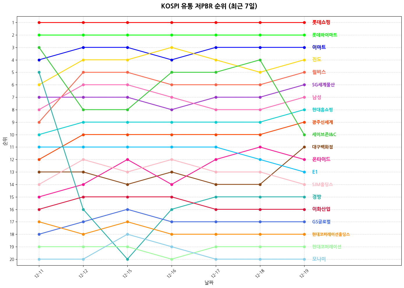 📊 유통 섹터 시가총액, 저PER, 저PBR, 현금유보율, 재무건전성 순위