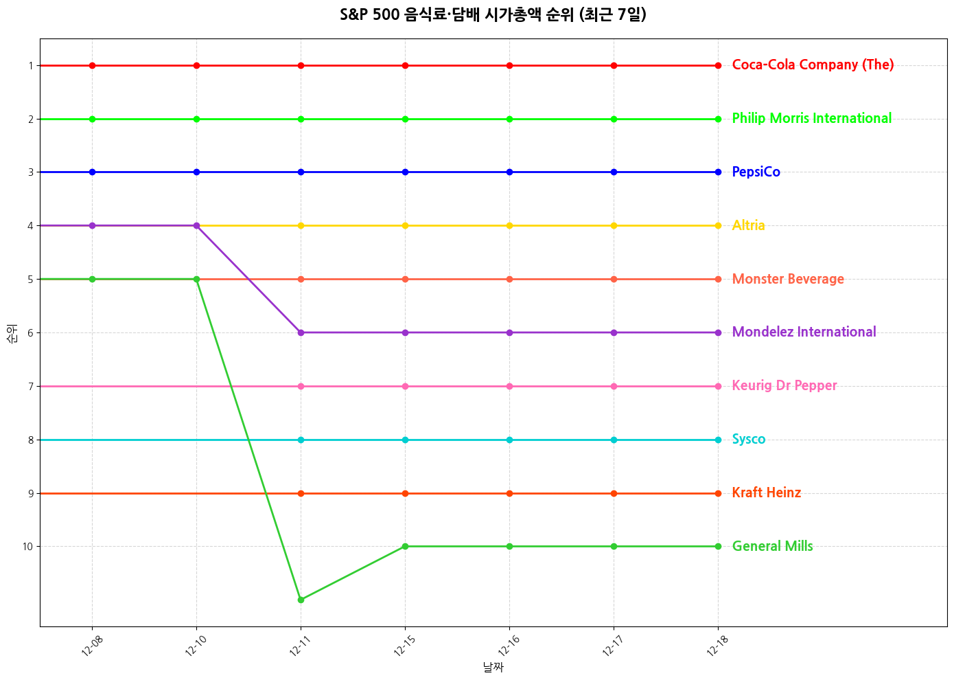📊 S&P 500 음식료·담배 시가총액 TOP 10 순위 변화