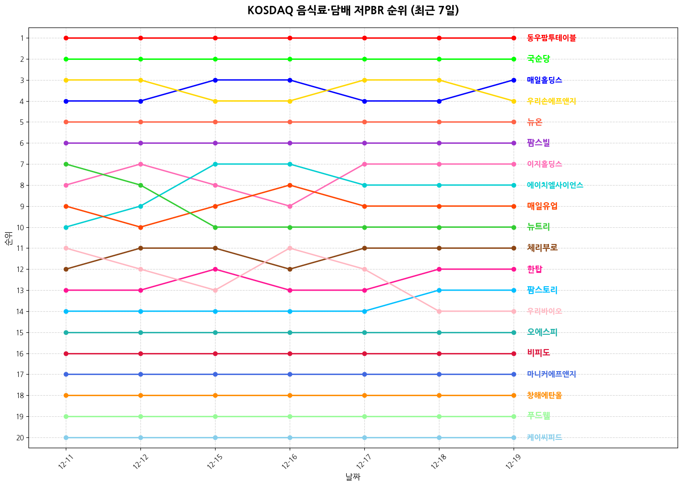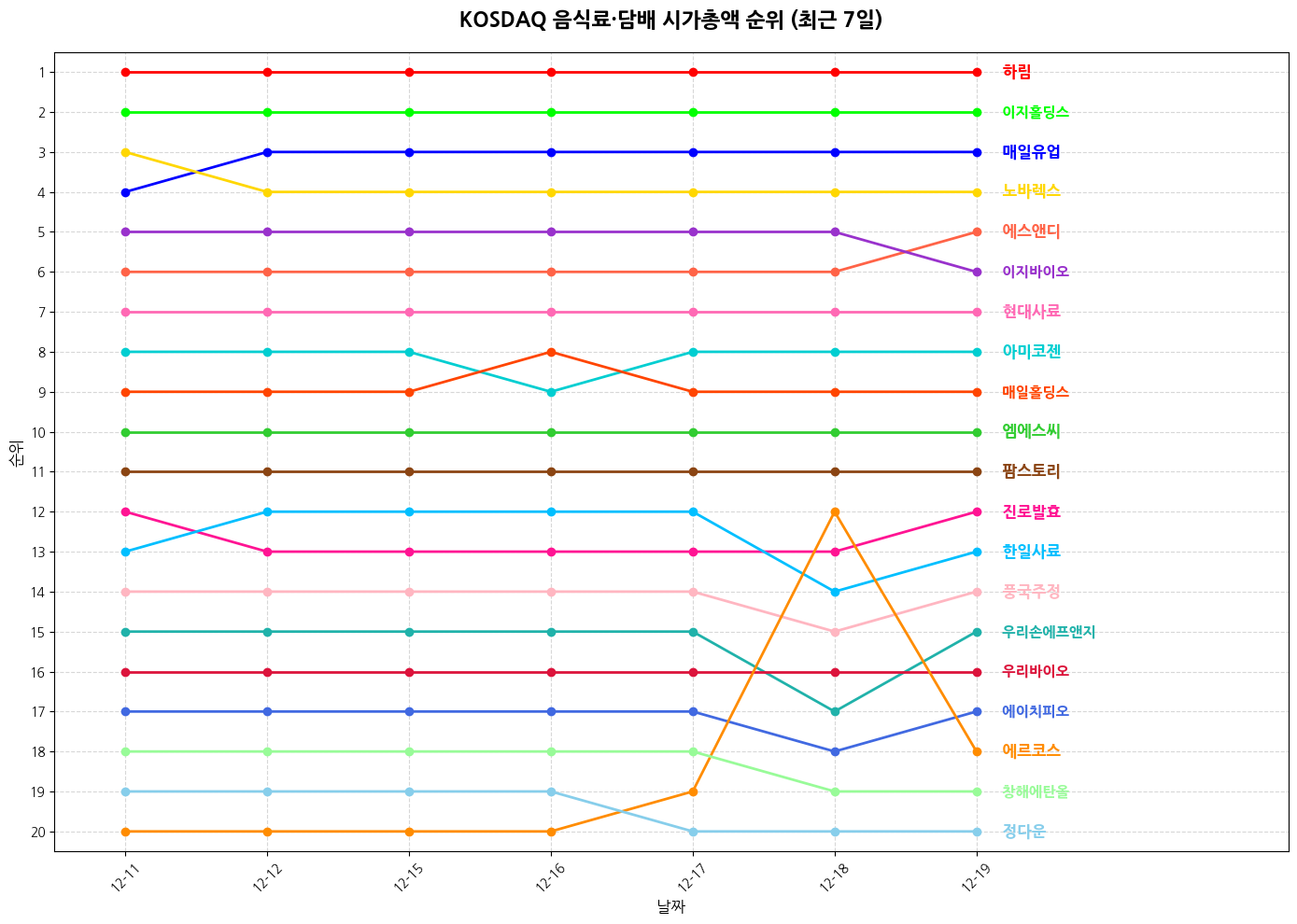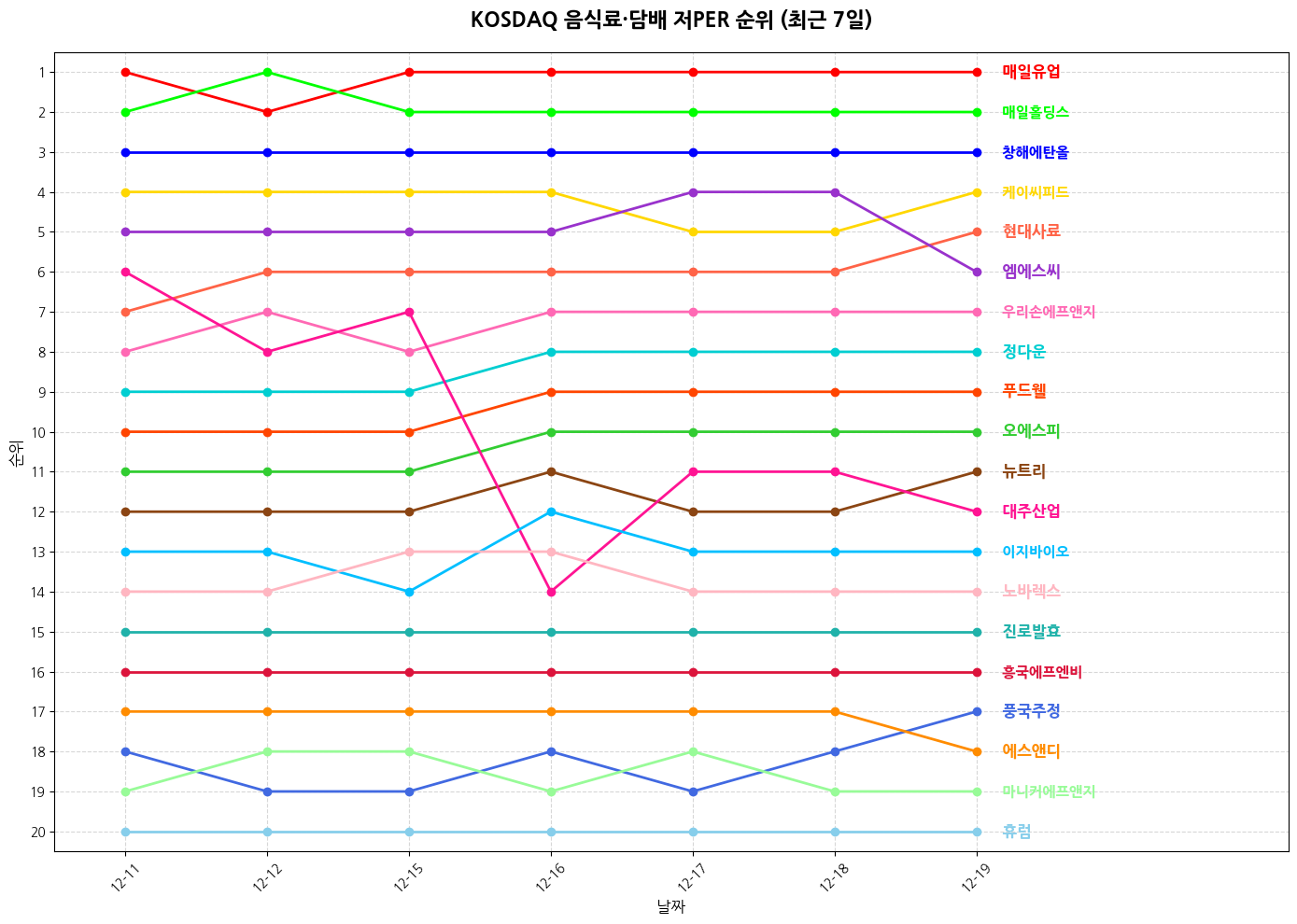 3️⃣ 코스닥 음식료·담배 기업 순위 (성장주)