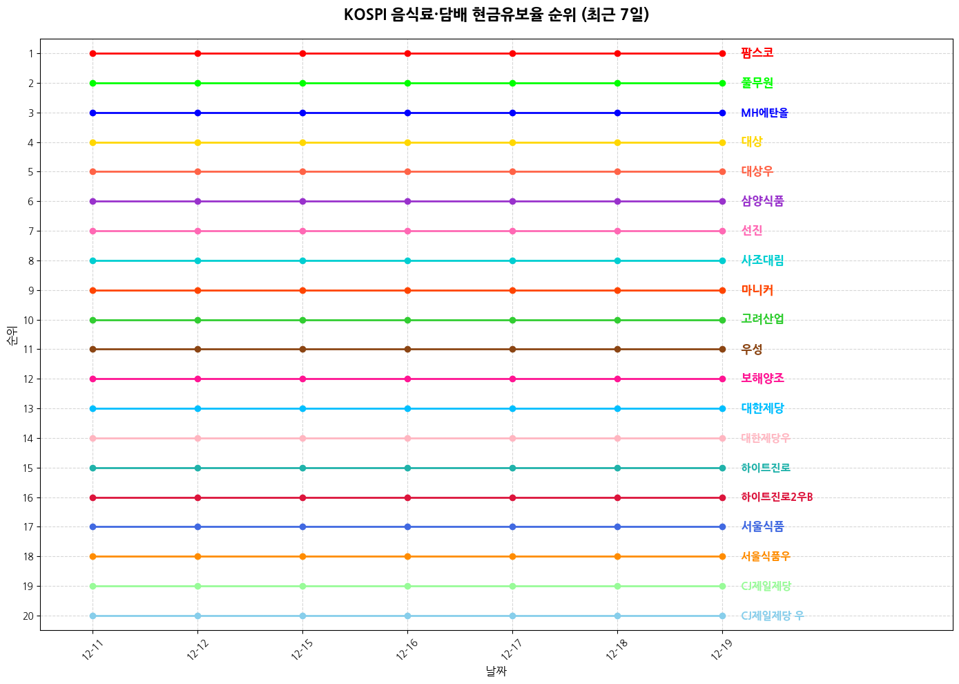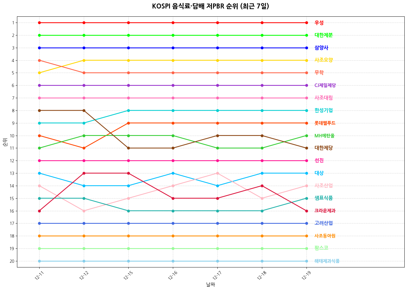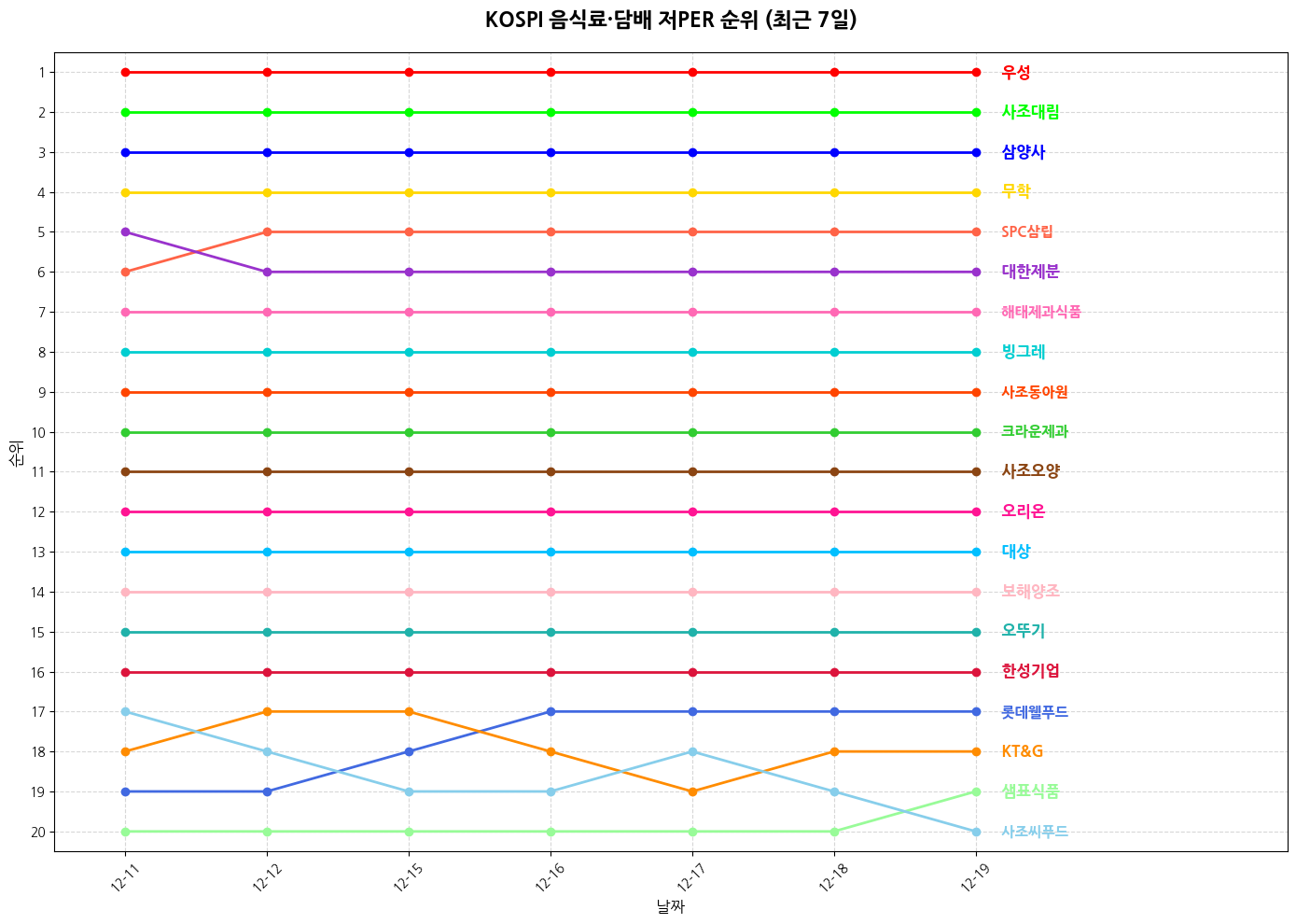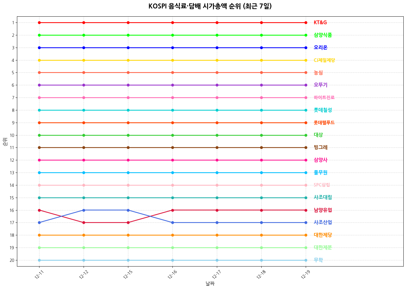 2️⃣ 코스피 음식료·담배 기업 순위 (대형주)