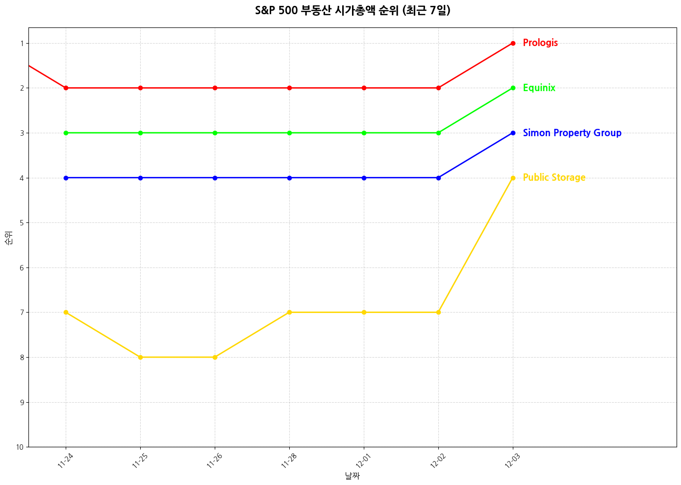 📊 S&P 500 부동산 시가총액 TOP 10 순위 변화