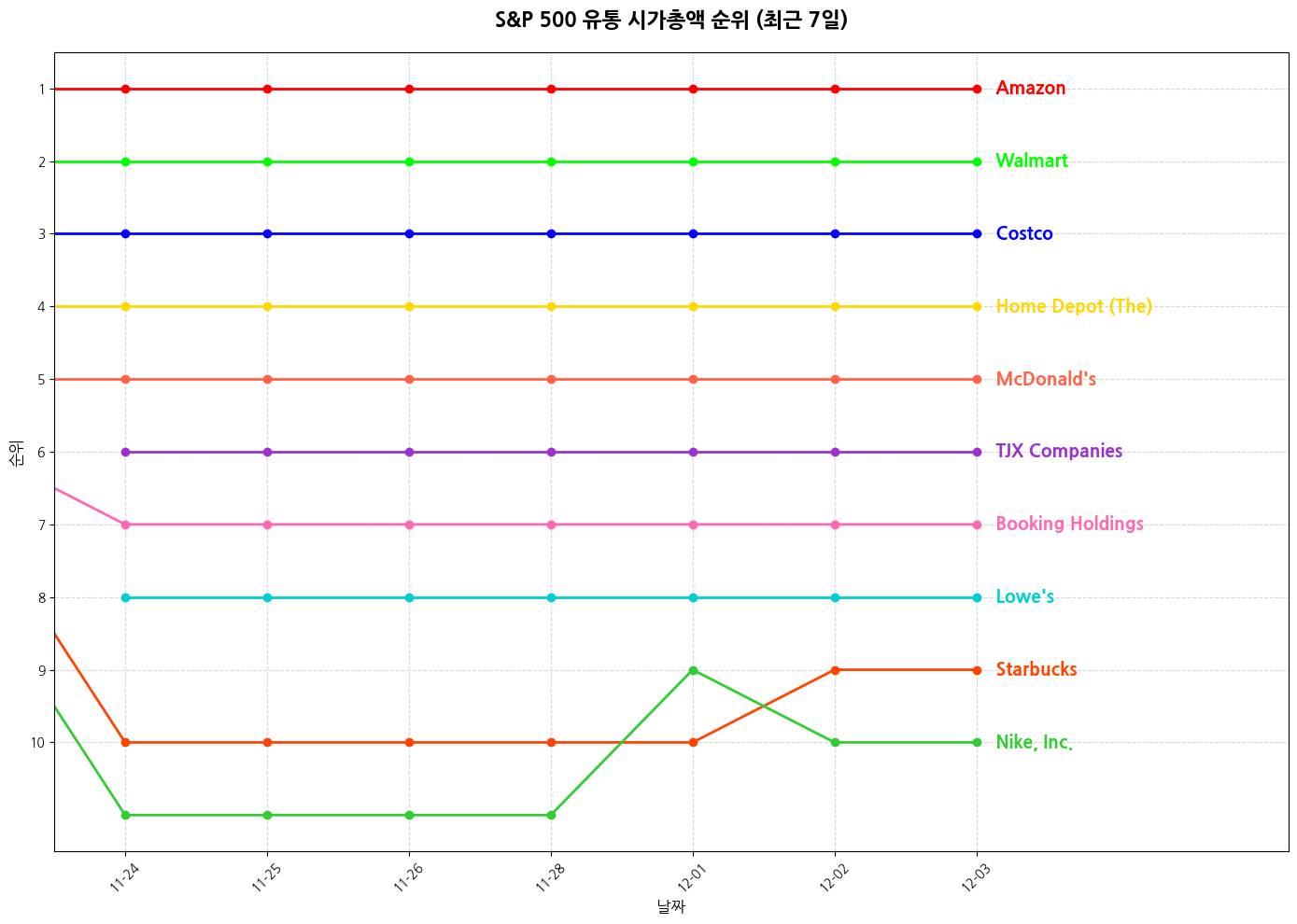 📊 S&P 500 유통 시가총액 TOP 10 순위 변화