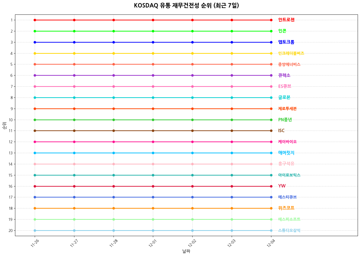 - 🔄 전일 대비 변화 – 각 종목의 순위 변동을 ▲상승, ▼하락, – 유지로 표시합니다