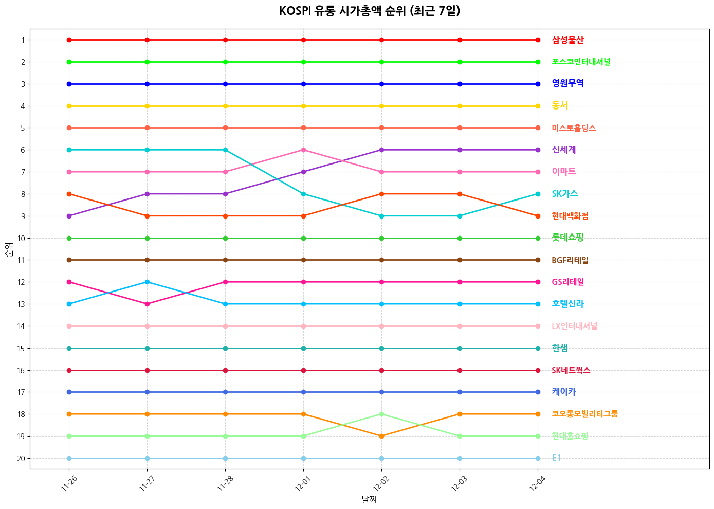 2️⃣ 코스피 유통 기업 순위 (대형주)