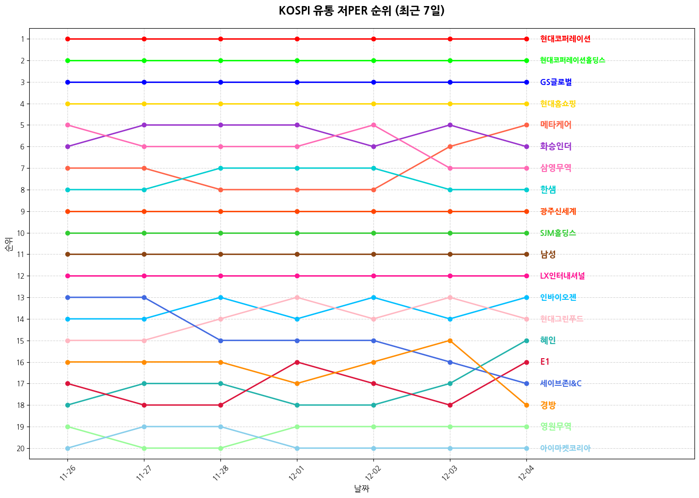 - 💎 저PER TOP 20 – 이익 대비 주가가 저렴한 종목들입니다. 가성비 좋은 투자처가 될 수 있어요