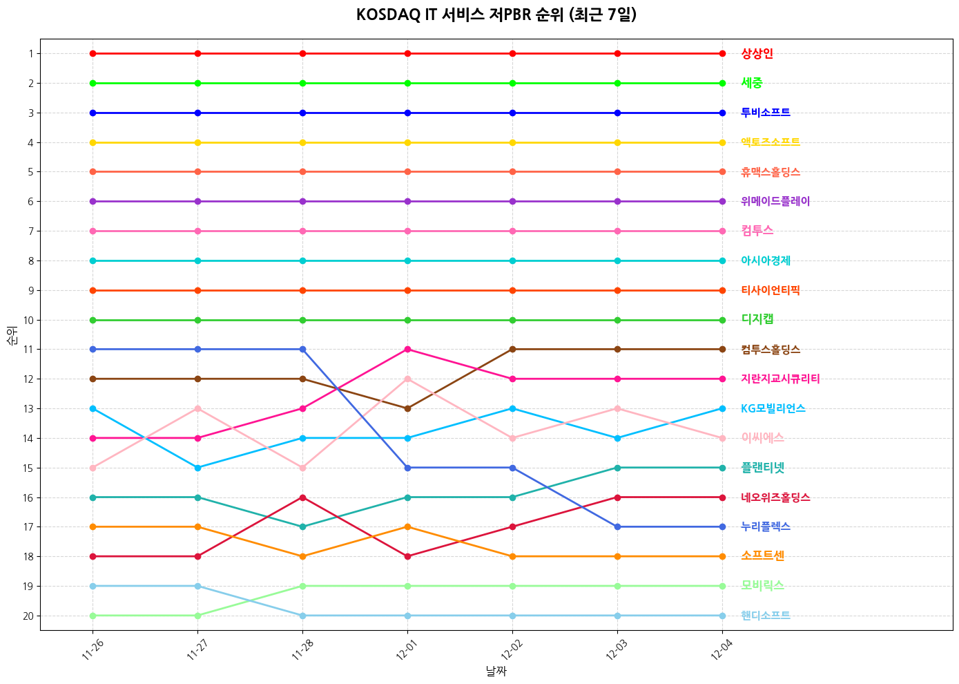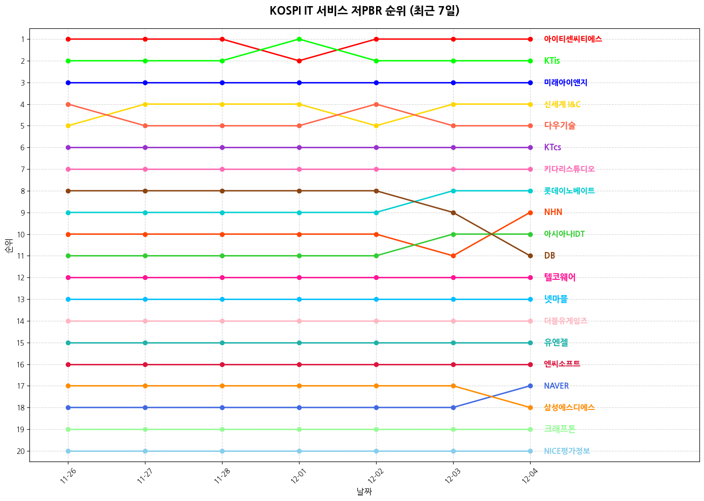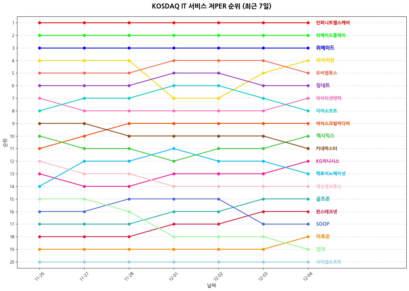 3️⃣ 코스닥 IT 서비스 기업 순위 (성장주)