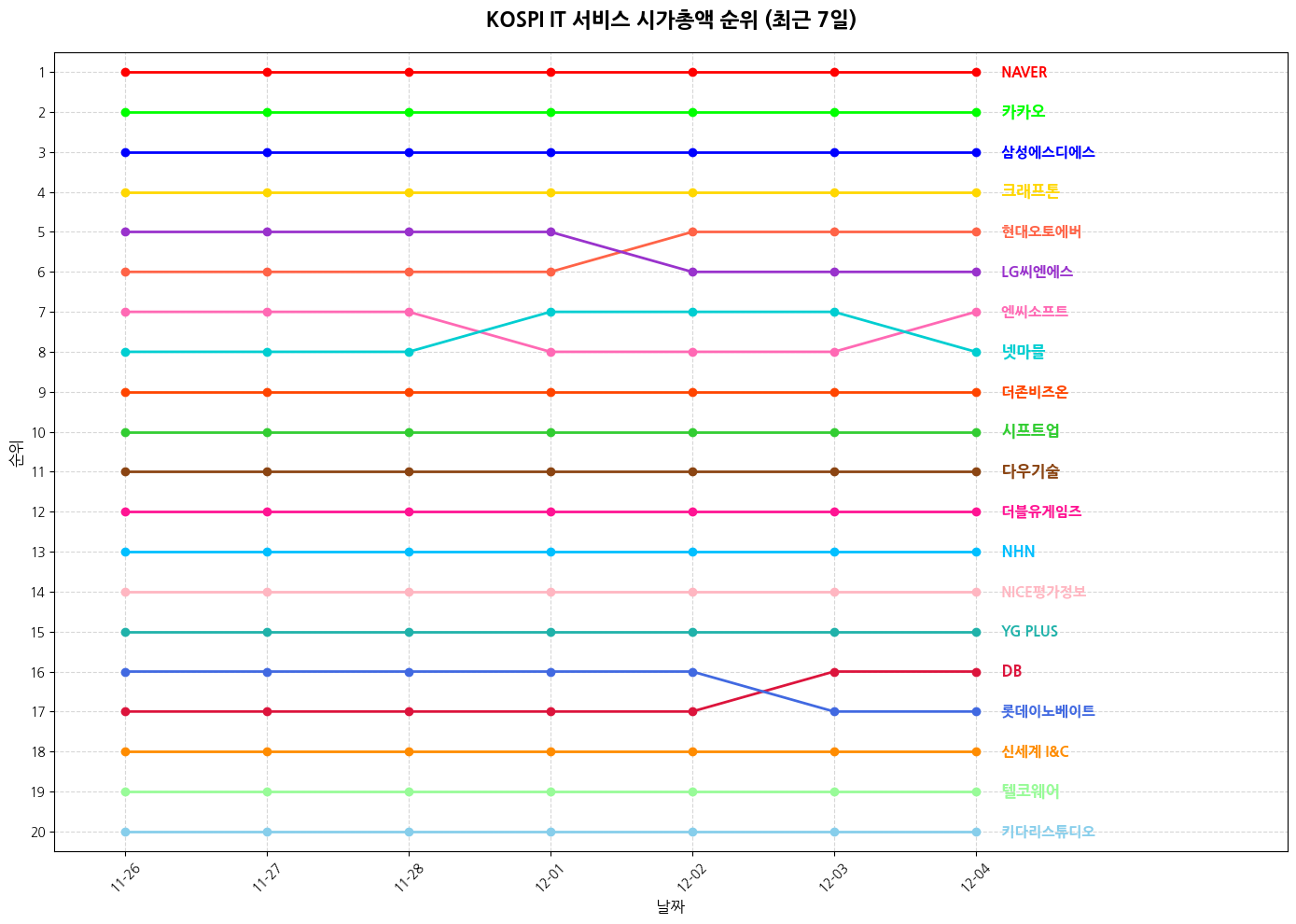 2️⃣ 코스피 IT 서비스 기업 순위 (대형주)