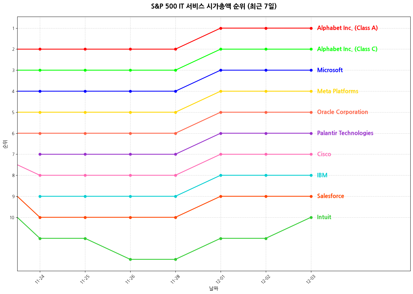 📊 S&P 500 IT 서비스 시가총액 TOP 10 순위 변화
