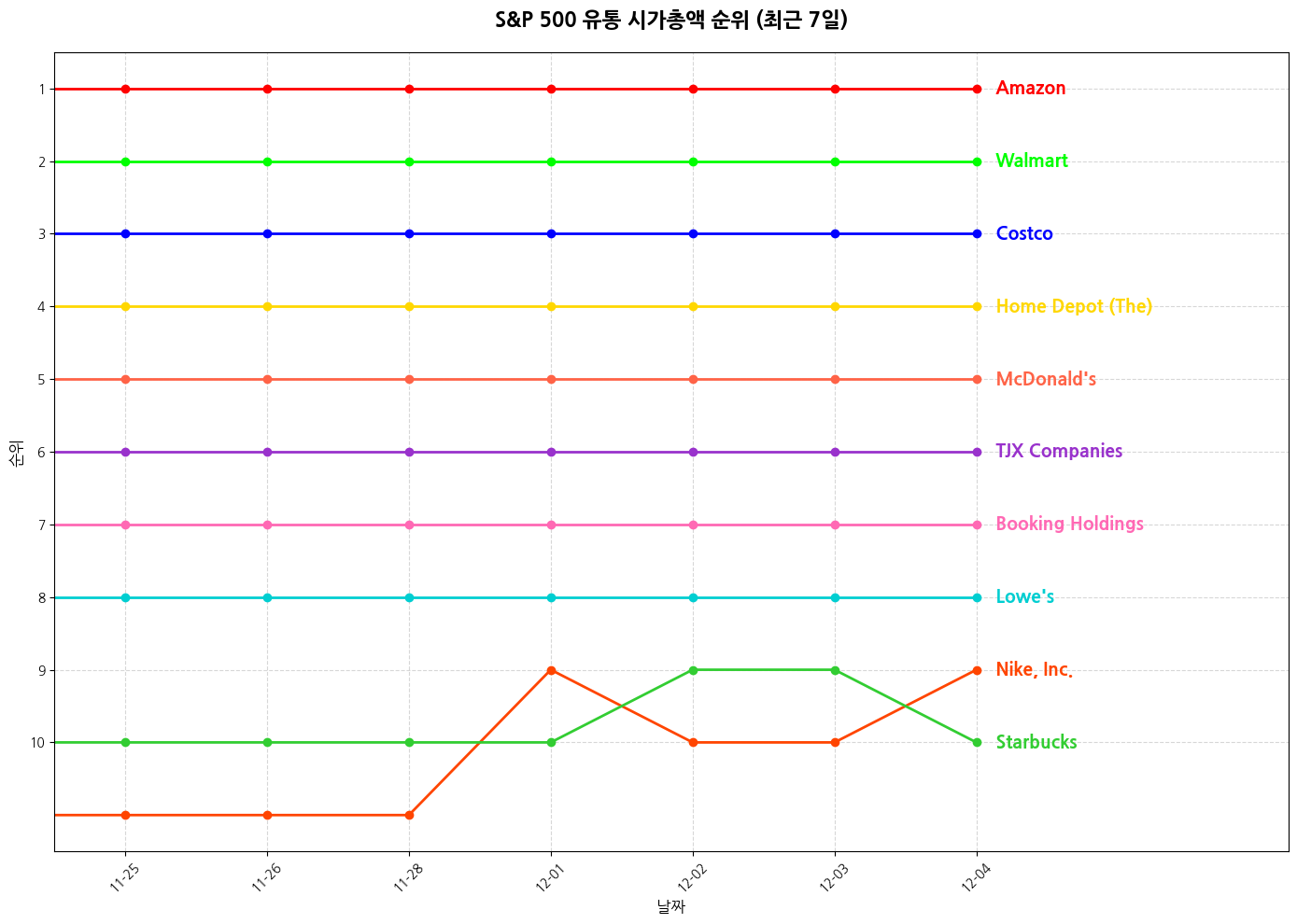 📊 S&P 500 유통 시가총액 TOP 10 순위 변화