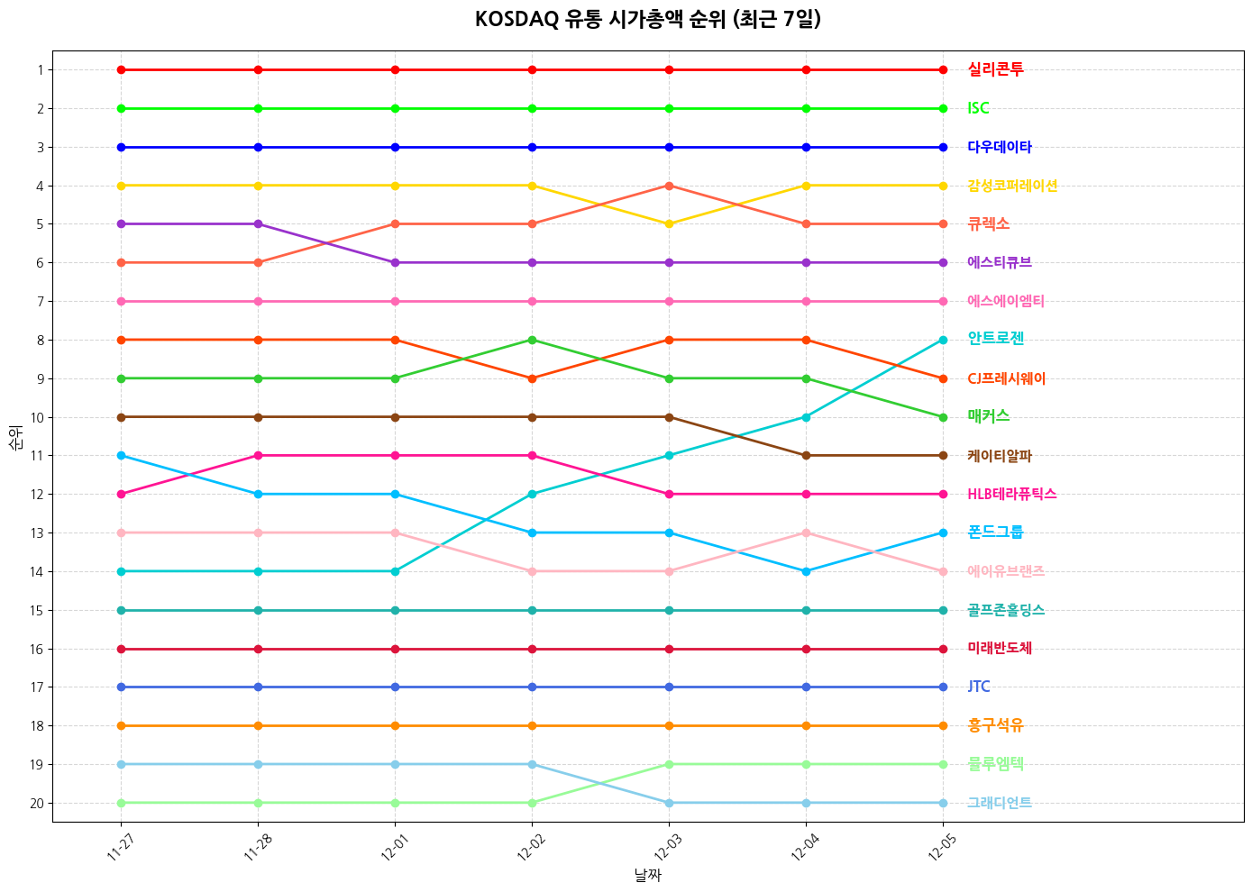 • 📊 7일간 순위 변동 그래프 – 최근 일주일간 순위가 어떻게 변했는지 한눈에 확인하세요