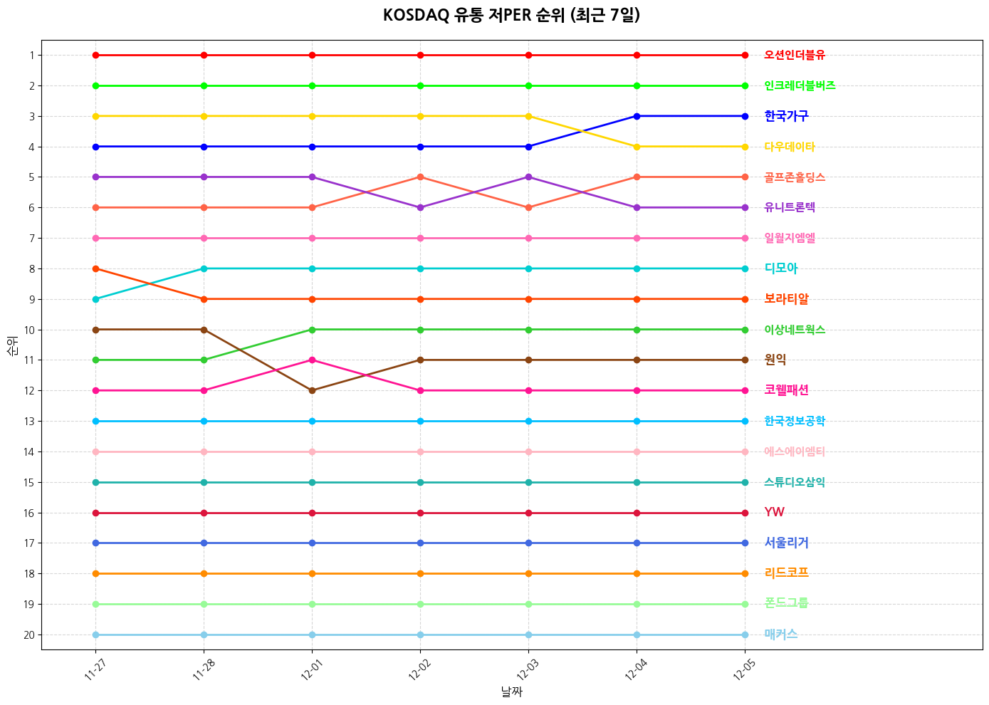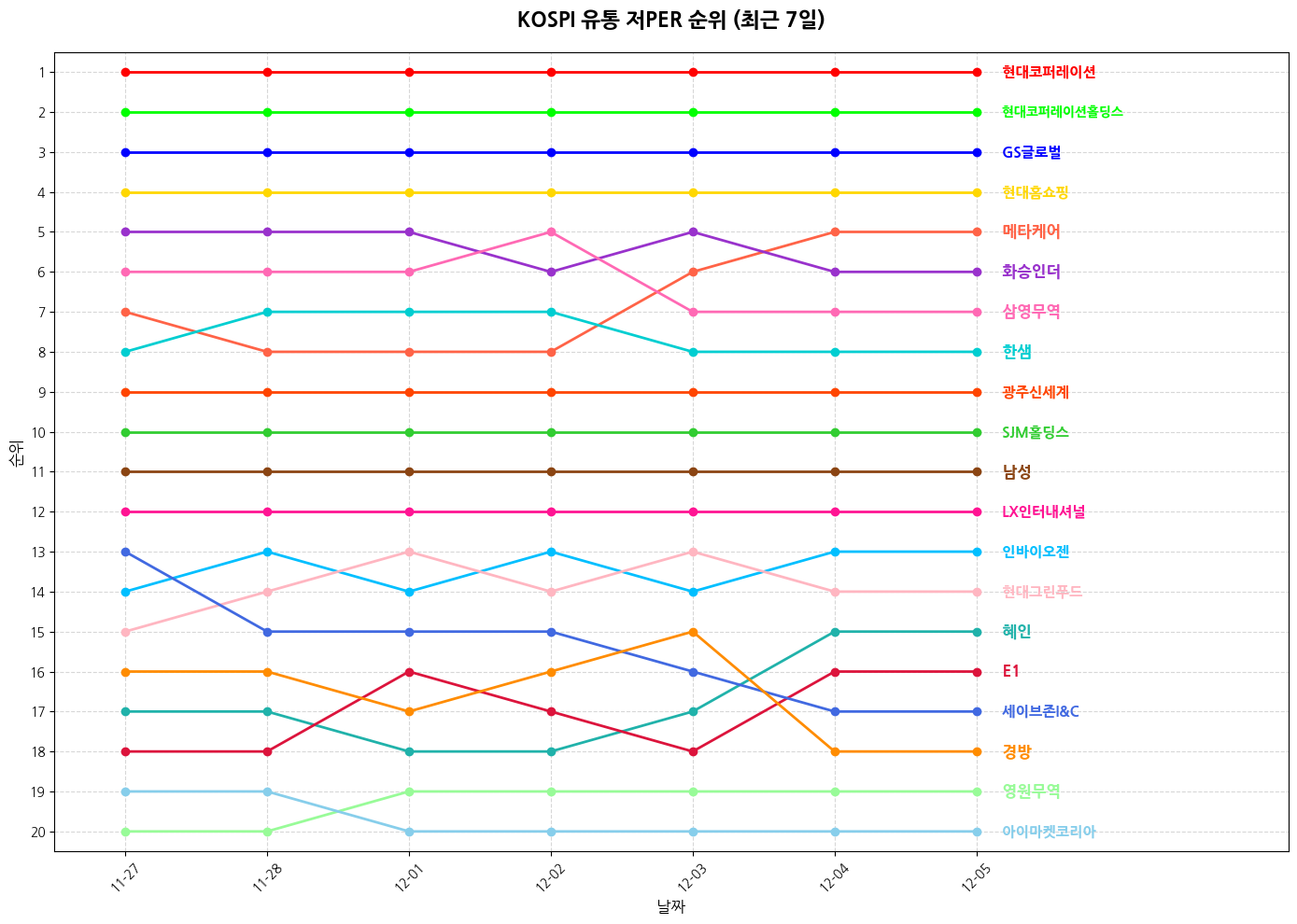 • 💎 저PER TOP 20 – 이익 대비 주가가 저렴한 종목들입니다. 가성비 좋은 투자처가 될 수 있어요
