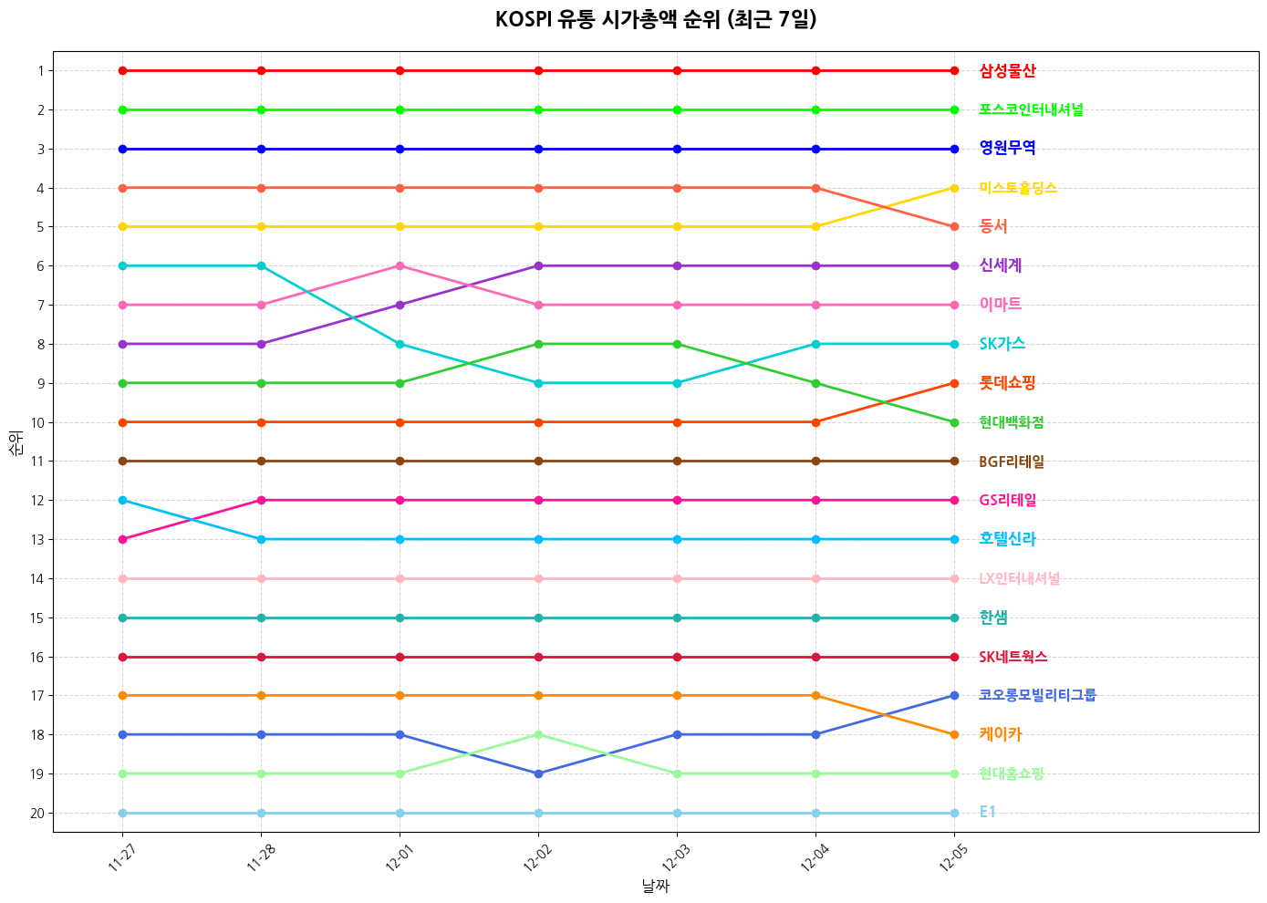2️⃣ 코스피 유통 기업 순위 (대형주)