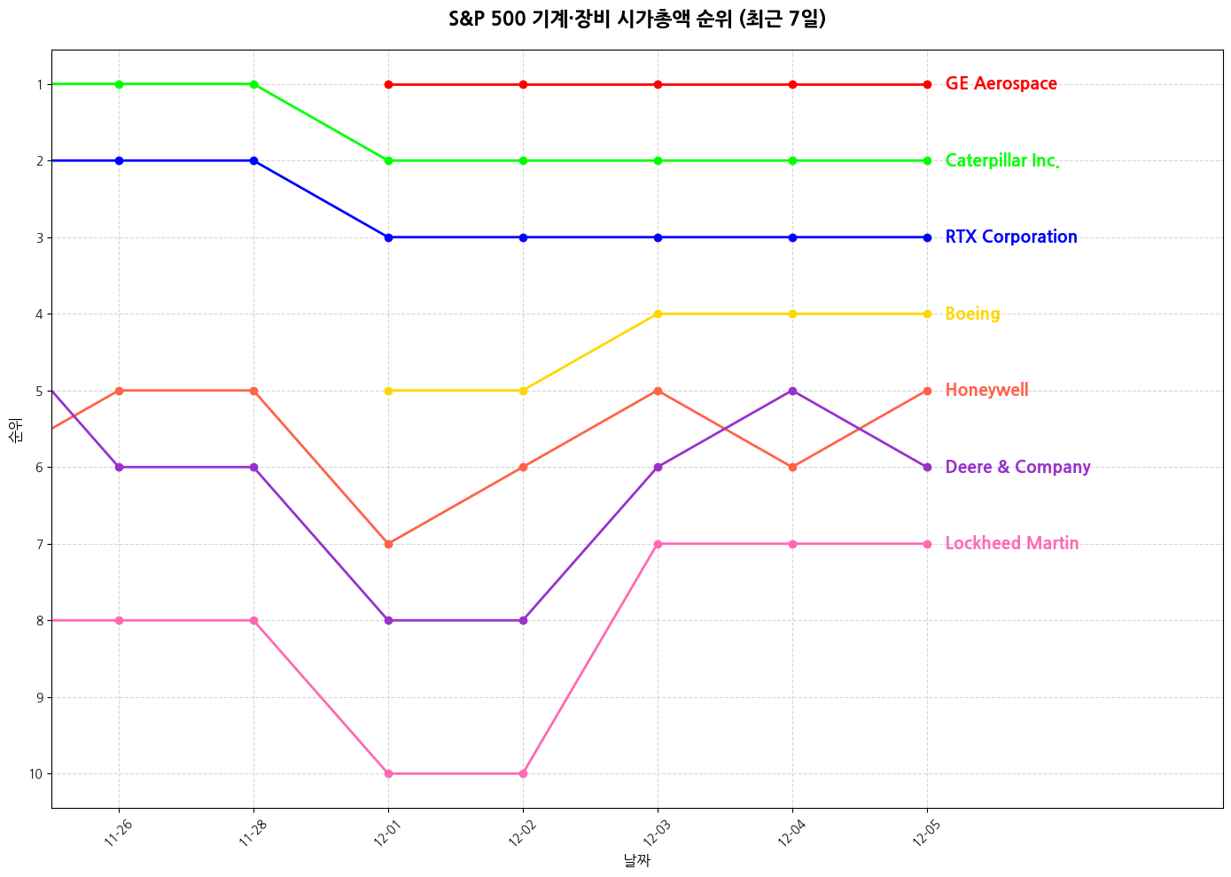 📊 S&P 500 기계·장비 시가총액 TOP 10 순위 변화