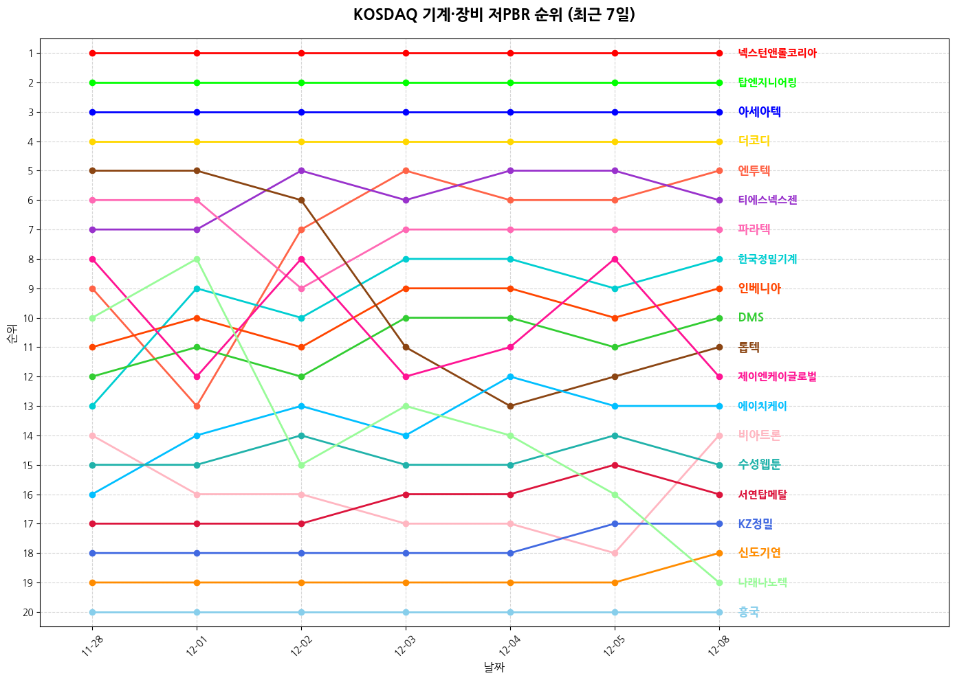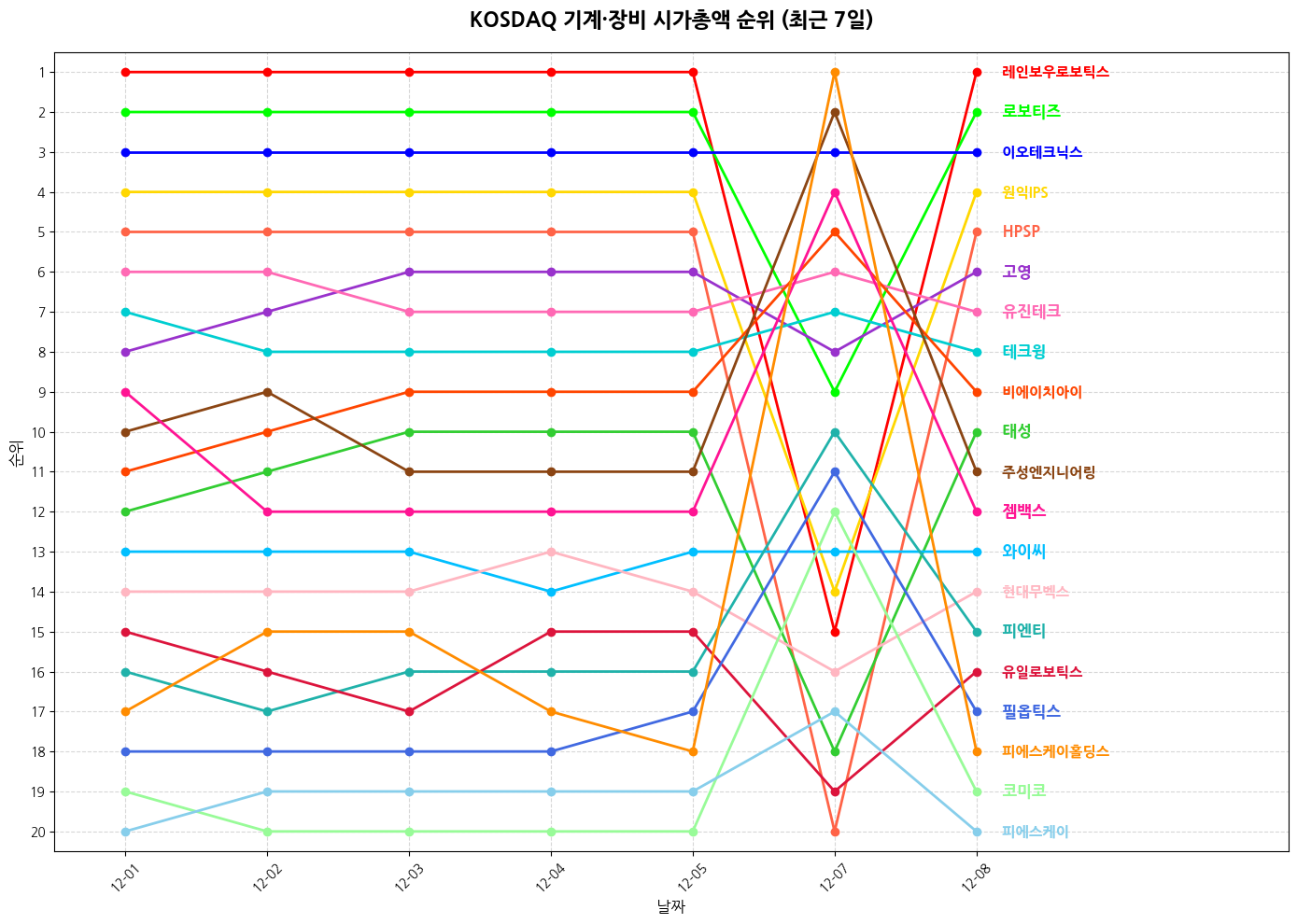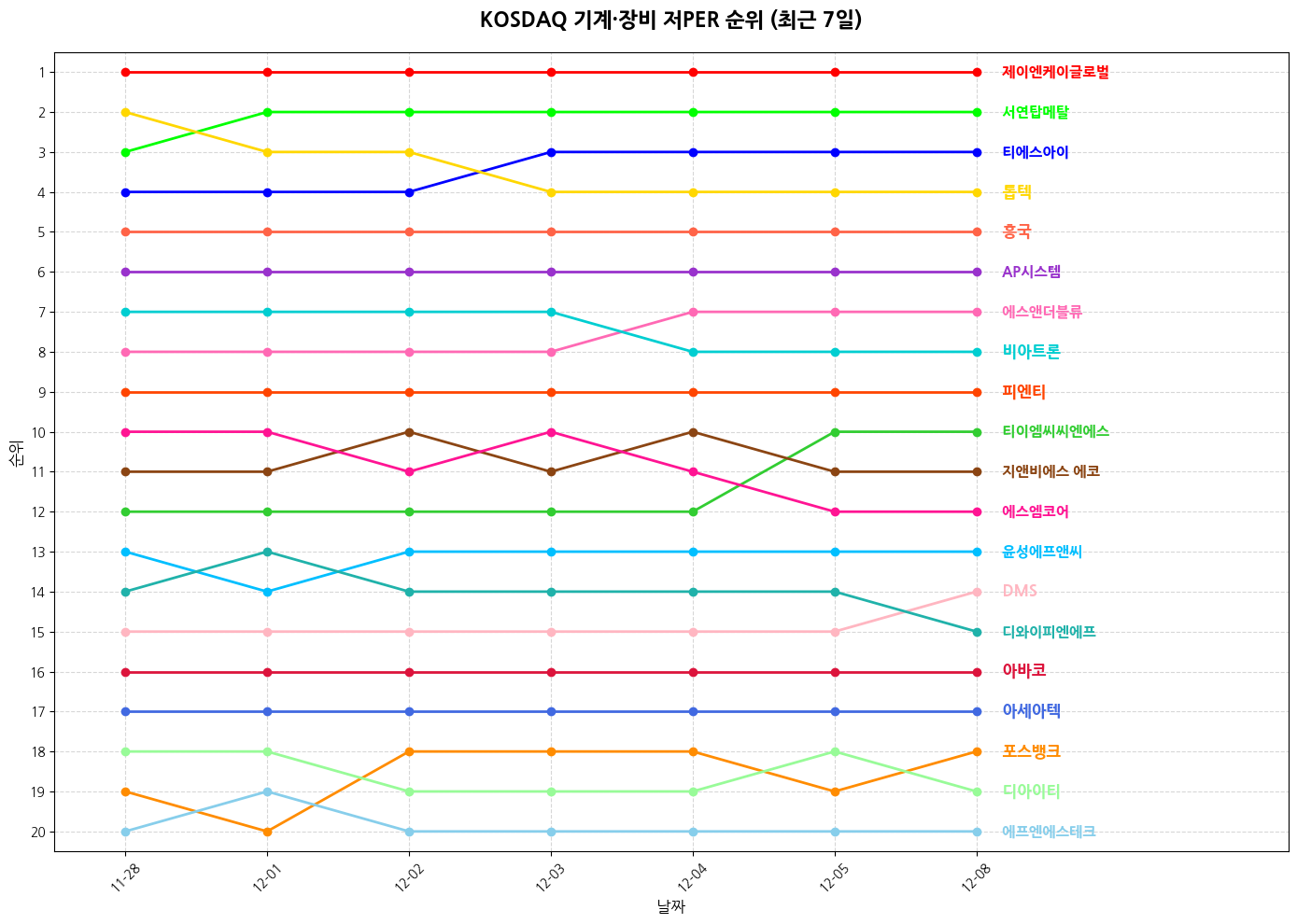3️⃣ 코스닥 기계·장비 기업 순위 (성장주)