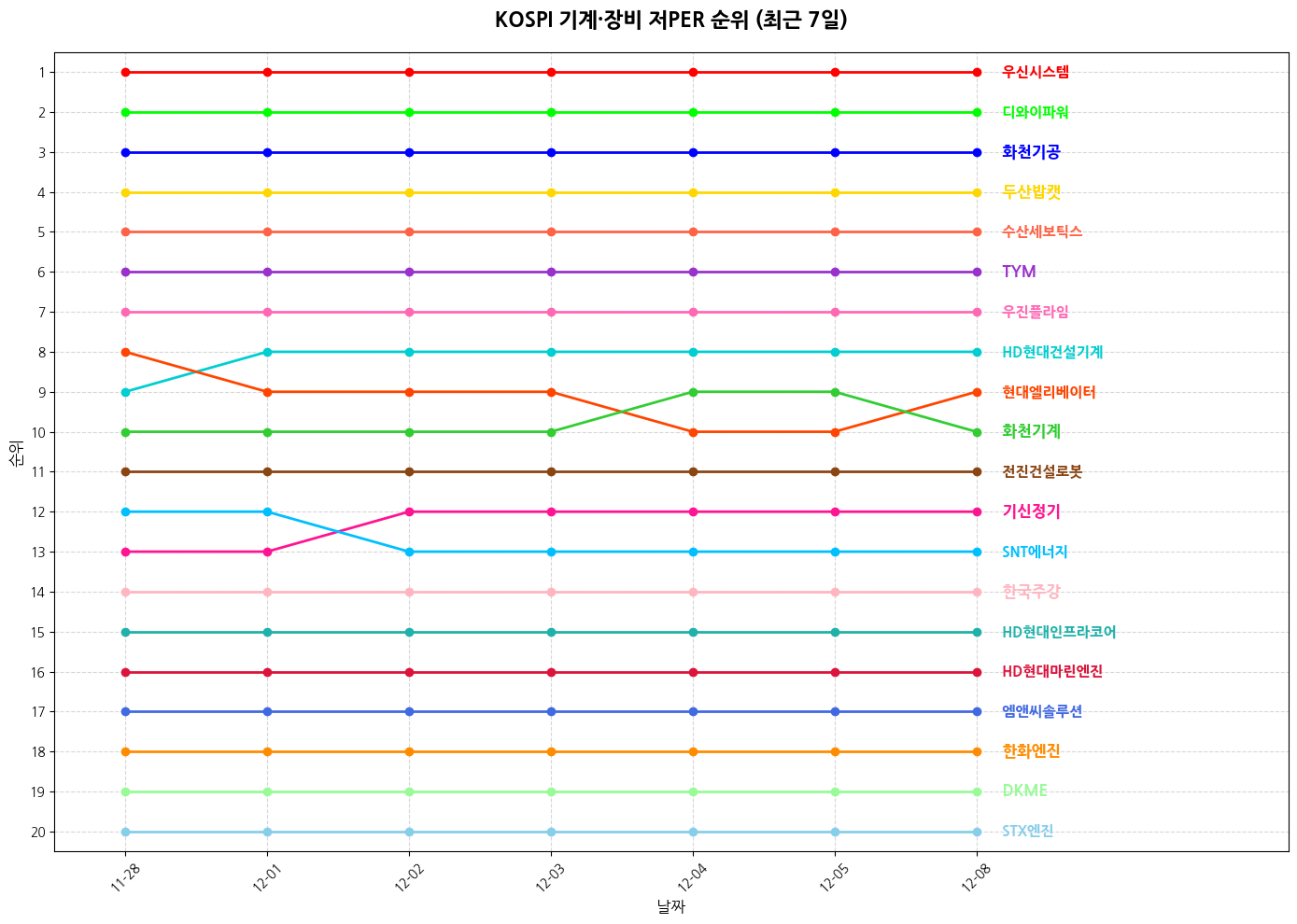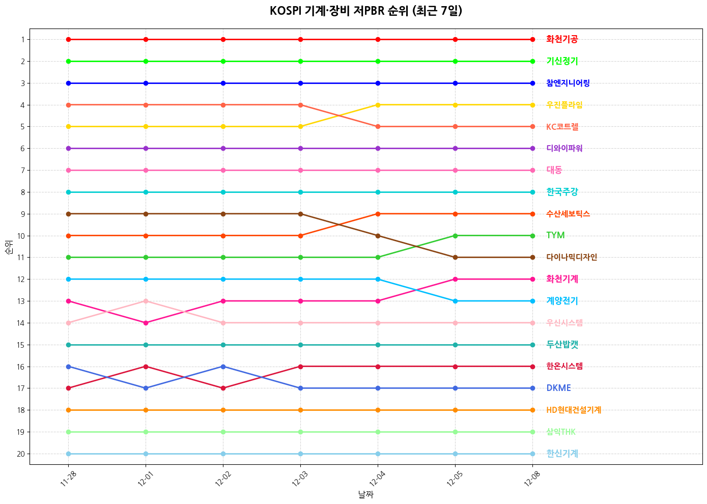 📊 기계·장비 섹터 시가총액, 저PER, 저PBR, 현금유보율, 재무건전성 순위
