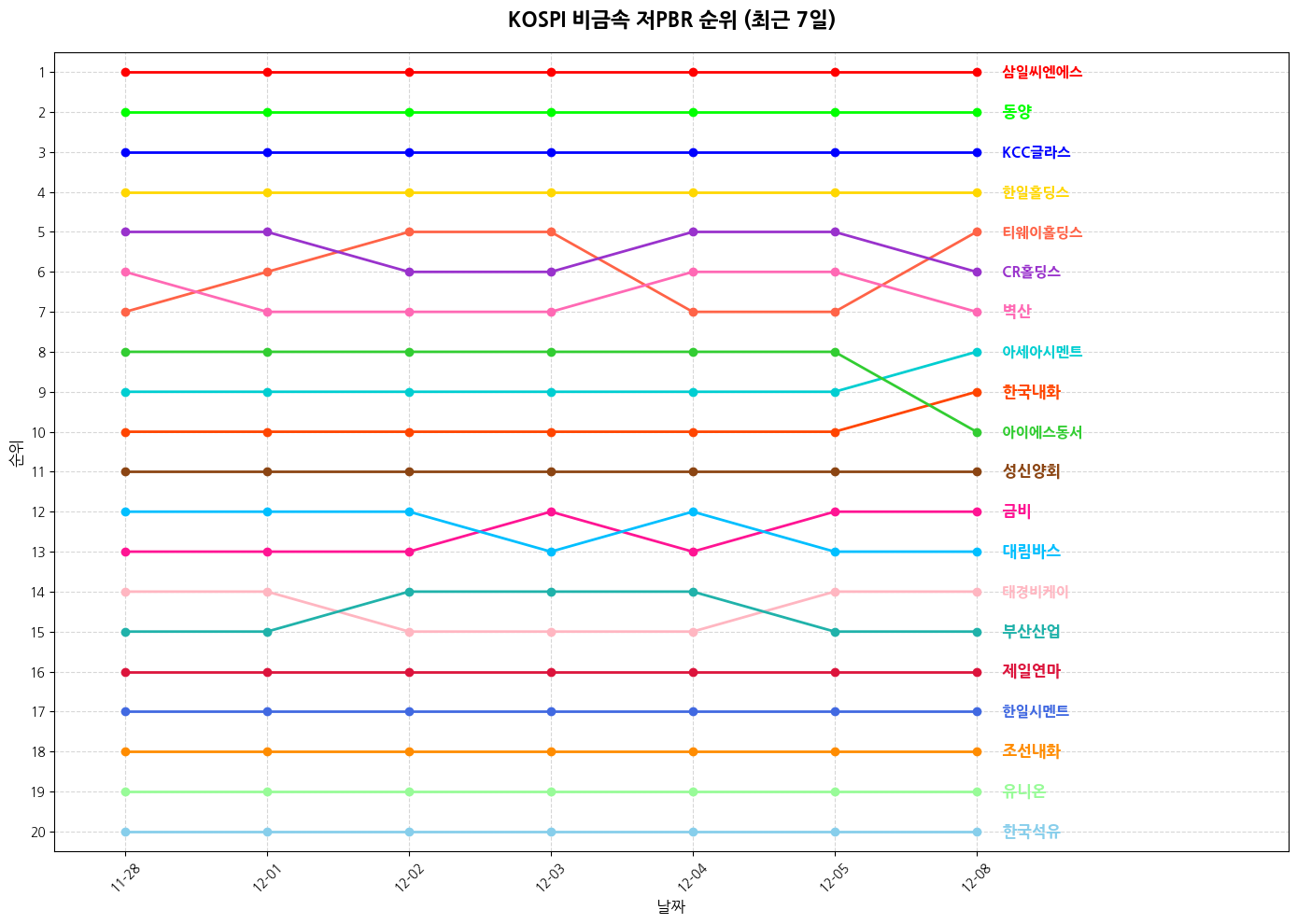 • 🏦 저PBR TOP 20 – 자산 대비 주가가 낮은 종목들입니다. “헐값”에 우량 자산을 살 기회일 수 있어요