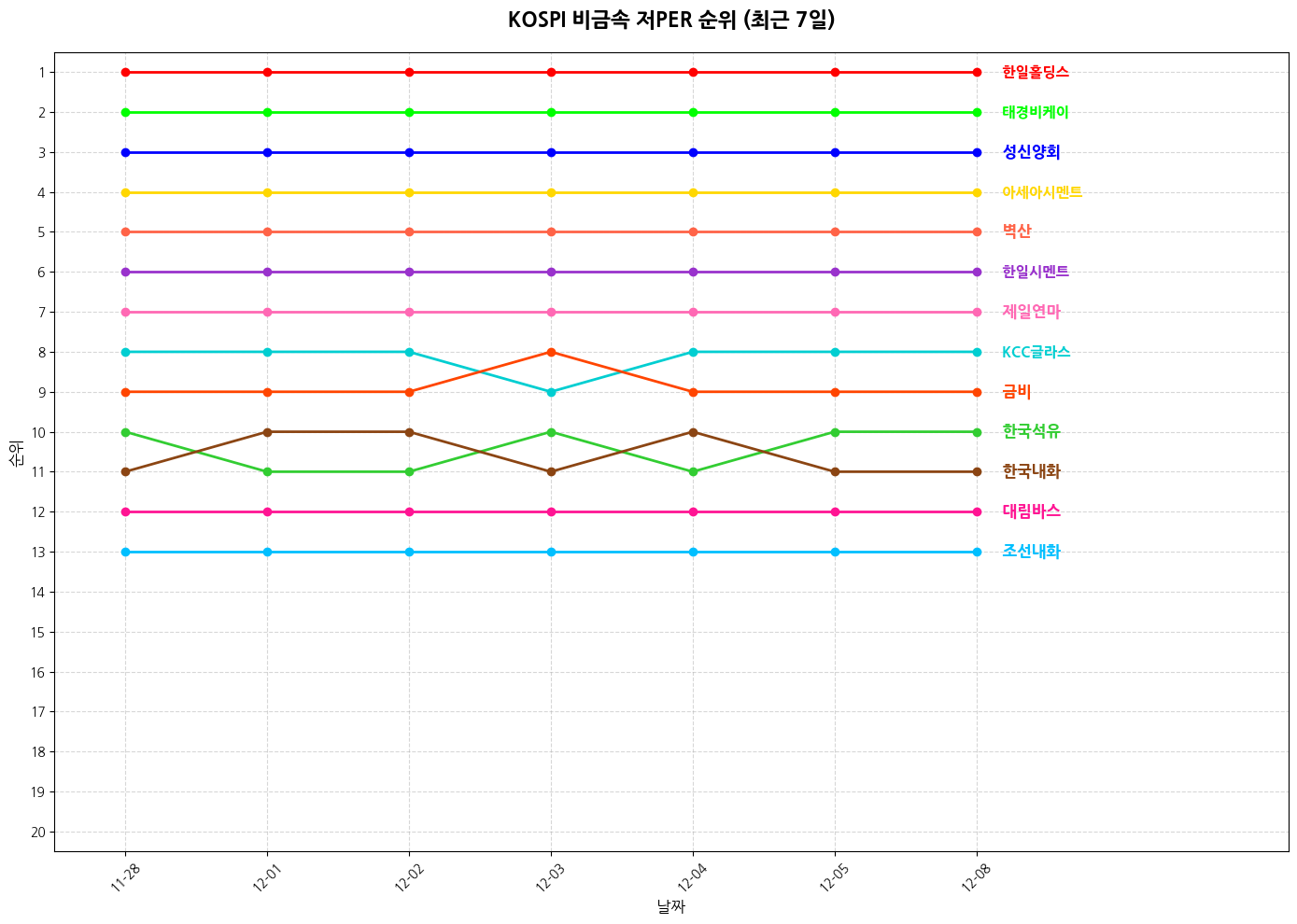 • 💎 저PER TOP 20 – 이익 대비 주가가 저렴한 종목들입니다. 가성비 좋은 투자처가 될 수 있어요