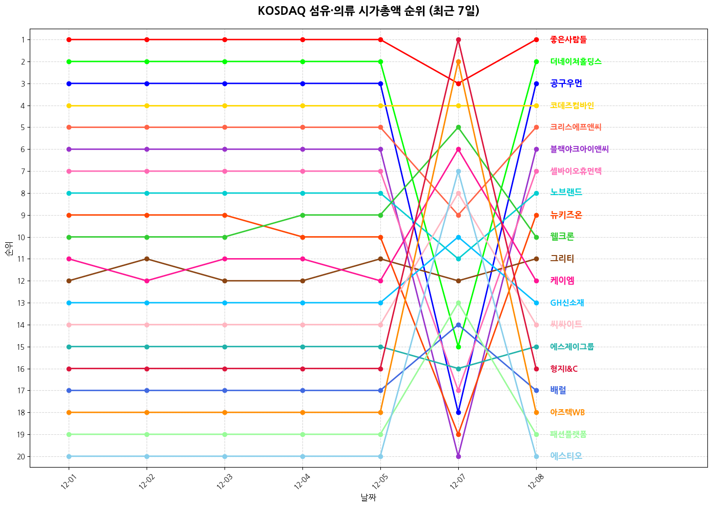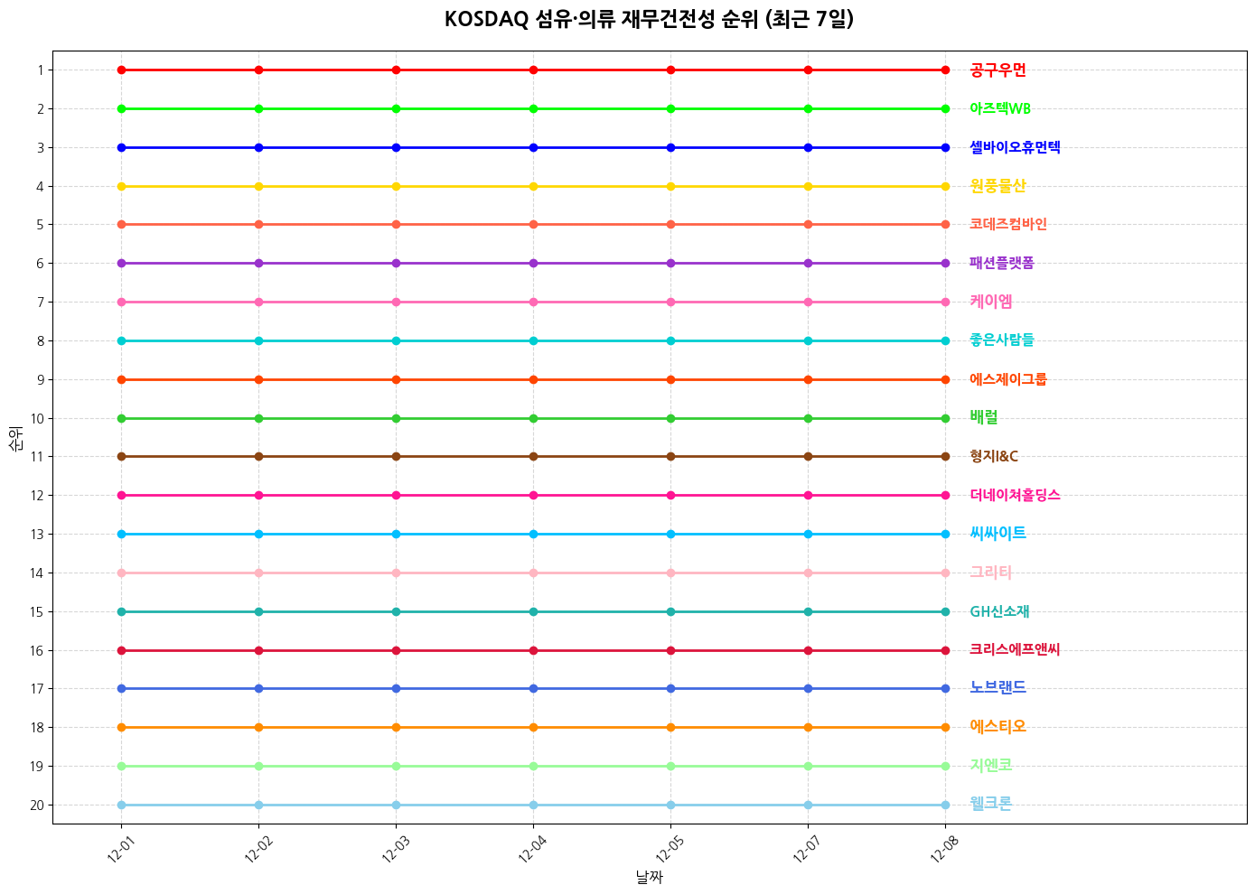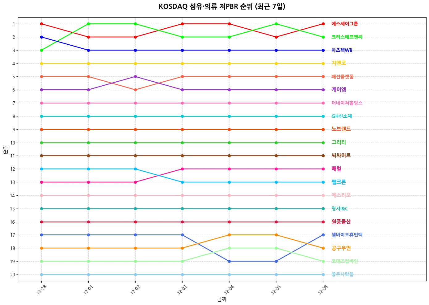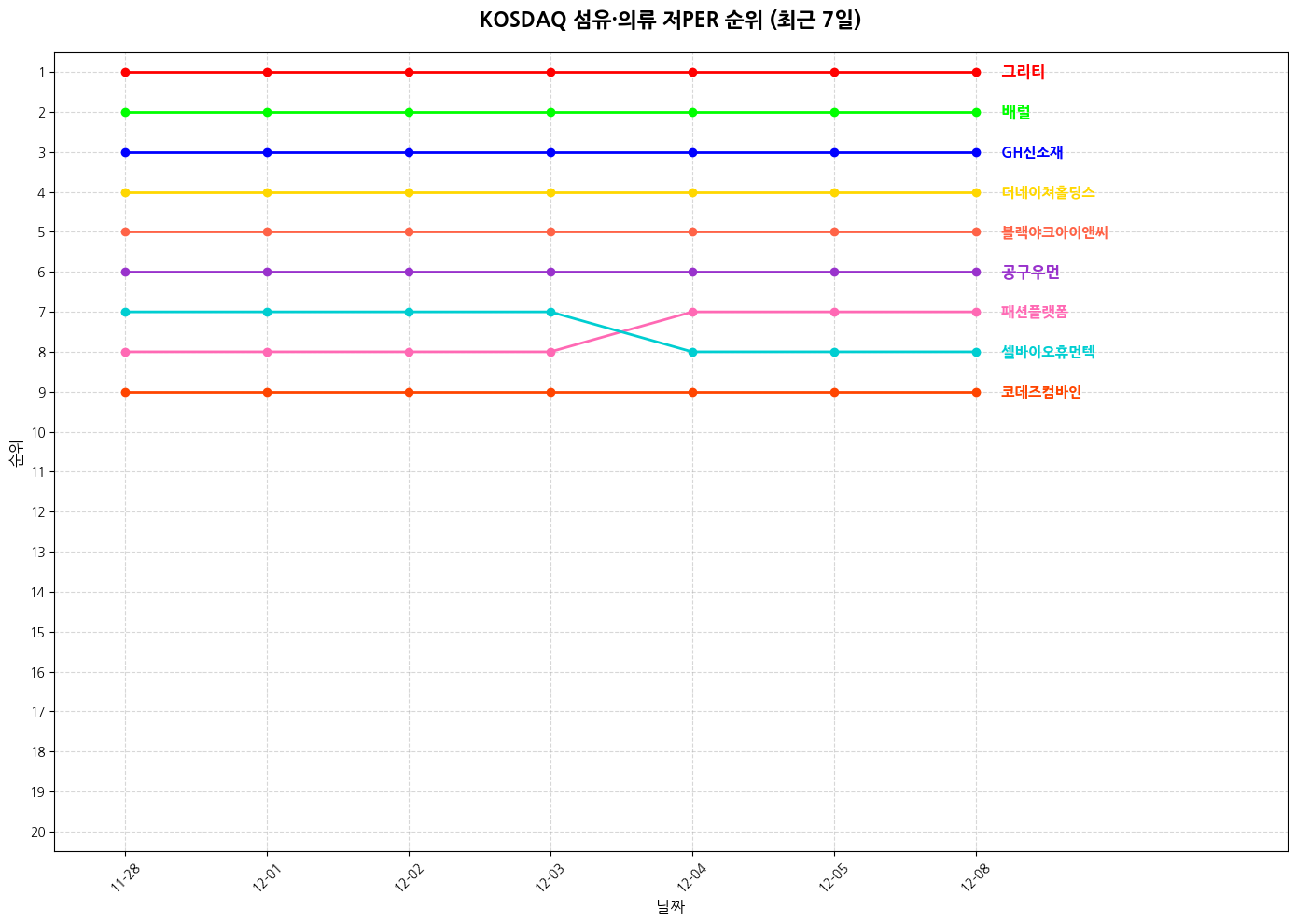 3️⃣ 코스닥 섬유·의류 기업 순위 (성장주)