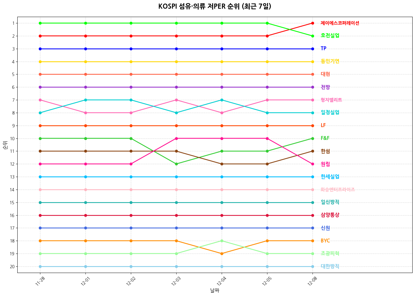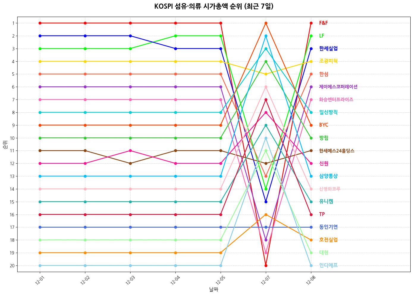 2️⃣ 코스피 섬유·의류 기업 순위 (대형주)